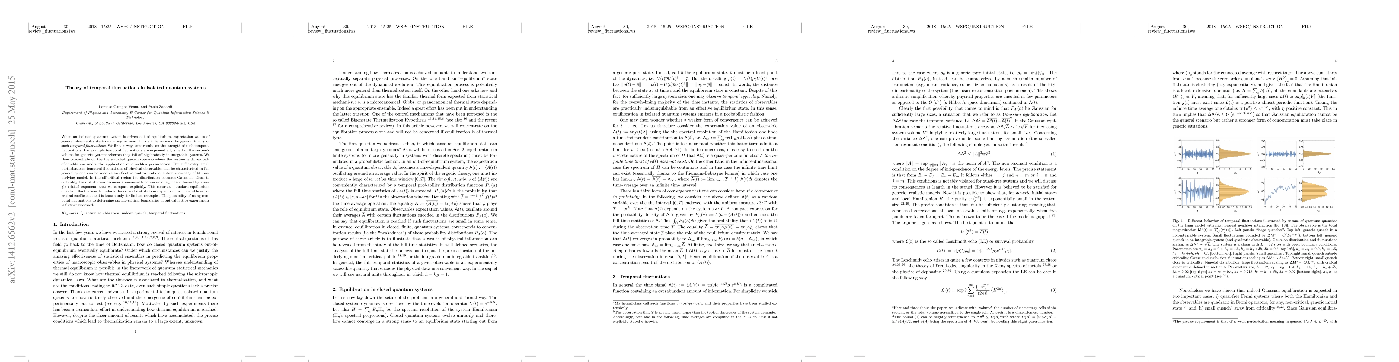This paper reviews the theory of temporal fluctuations in isolated quantum systems, particularly in the context of quench scenarios. It finds that fluctuations are exponentially small in generic systems but algebraic in integrable systems, and uses these fluctuations to probe quantum criticality, revealing a universal distribution near criticality.