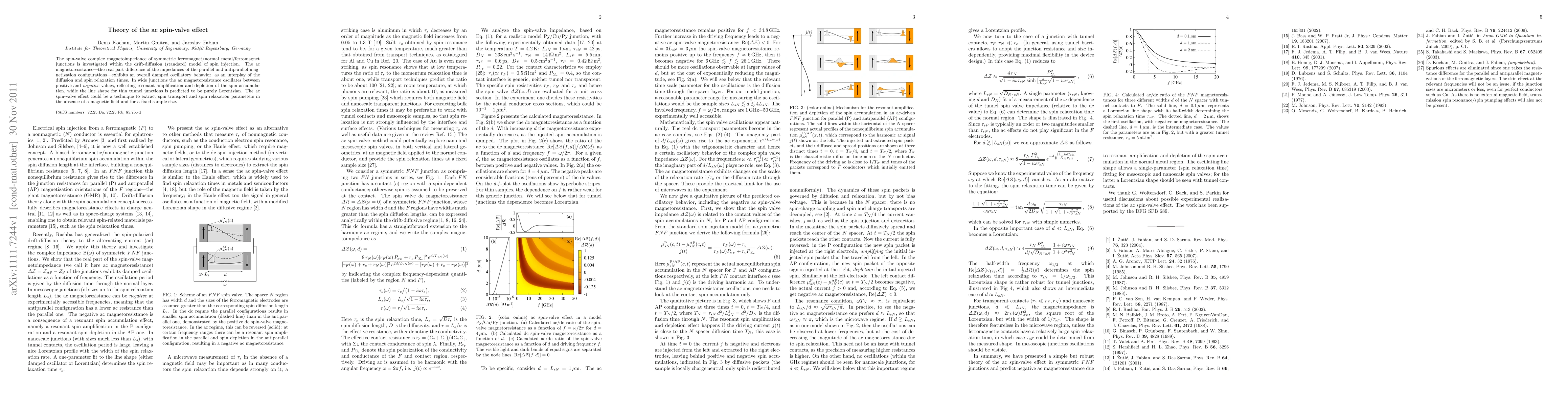 This paper explores the ac spin-valve effect in symmetric ferromagnet/normal metal/ferromagnet junctions, revealing damped oscillatory behavior in ac magnetoresistance due to spin diffusion and relaxation. The study suggests that this effect can be used to determine spin transport and relaxation parameters without an external magnetic field.