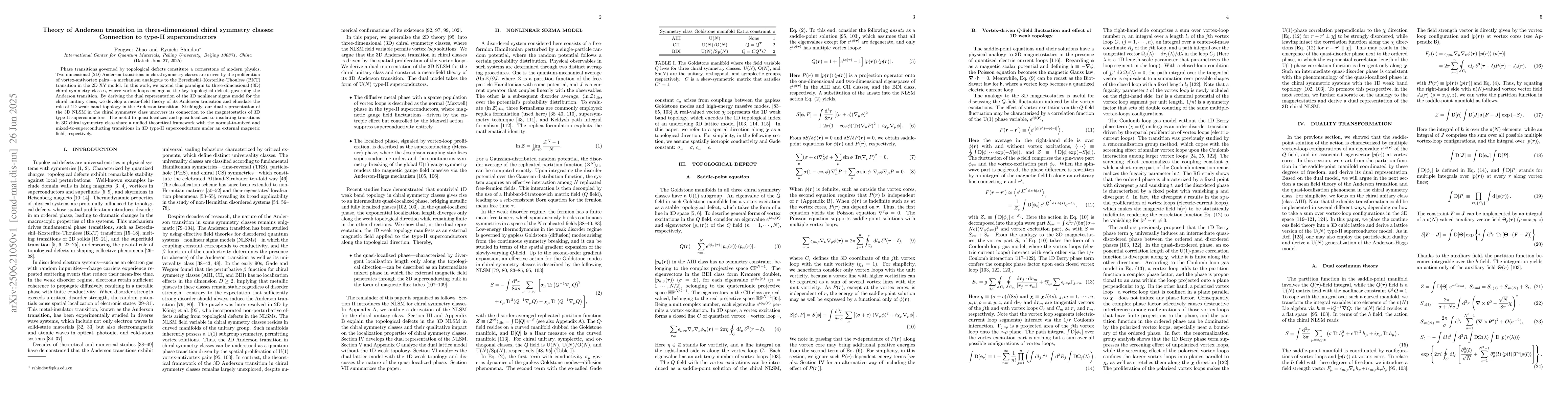 This research extends the understanding of 2D Anderson transitions in chiral symmetry classes to 3D, identifying vortex loops as key topological defects. It derives a dual representation of the 3D nonlinear sigma model for chiral unitary class, revealing a unified theoretical framework with 3D type-II superconductor transitions under magnetic fields.