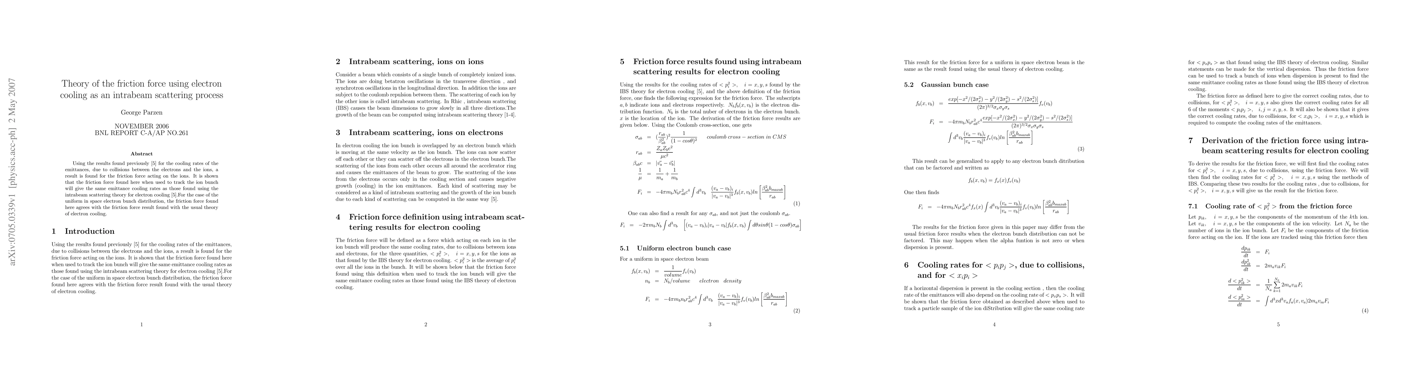 The research derives the friction force using electron cooling as an intrabeam scattering process, comparing cooling rates for <p2i>, i=x,y,s, due to collisions, using both the friction force and the method of intrabeam scattering (IBS).