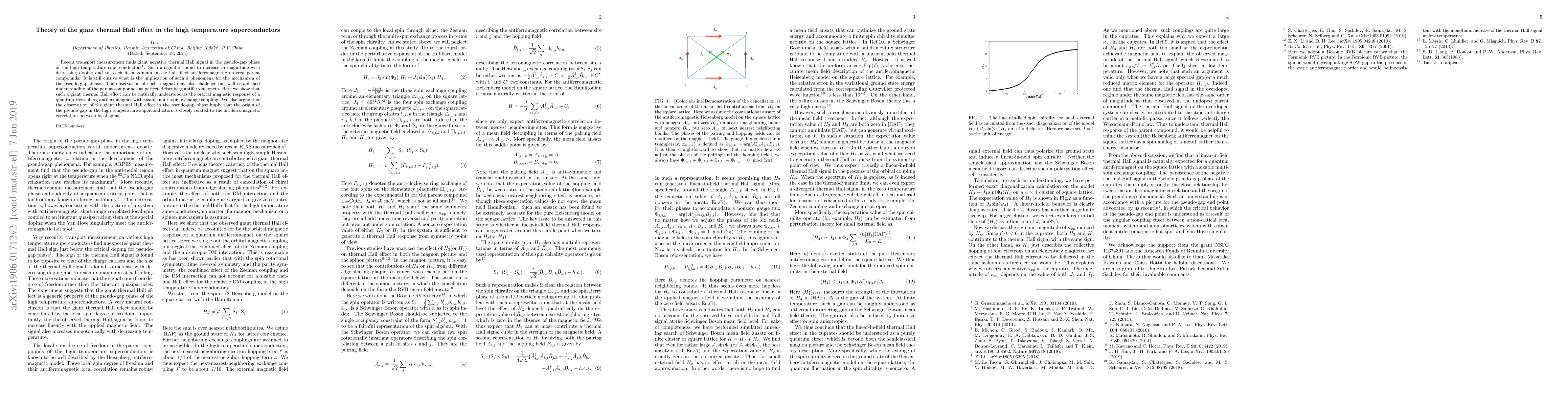 This paper explains the giant thermal Hall effect observed in high-temperature superconductors, attributing it to the orbital magnetic response of a quantum Heisenberg antiferromagnet. It suggests that the pseudo-gap phase's origin is linked to antiferromagnetic spin correlations, challenging the conventional view of parent compounds as perfect Heisenberg antiferromagnets.