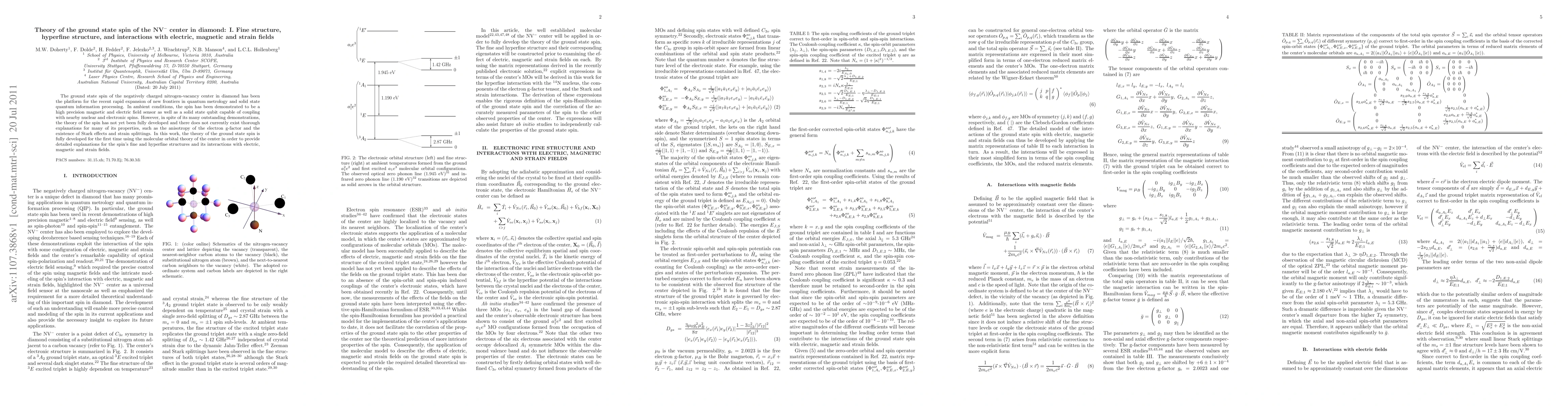 The ground state spin of the negatively charged nitrogen-vacancy center in diamond has been the platform for the recent rapid expansion of new frontiers in quantum metrology and solid state quantum information processing. In ambient conditions, the spin has been demonstrated to be a high precision magnetic and electric field sensor as well as a solid state qubit capable of coupling with nearby nuclear and electronic spins. However, in spite of its many outstanding demonstrations, the theory of the spin has not yet been fully developed and there does not currently exist thorough explanations for many of its properties, such as the anisotropy of the electron g-factor and the existence of Stark effects and strain splittings. In this work, the theory of the ground state spin is fully developed for the first time using the molecular orbital theory of the center in order to provide detailed explanations for the spin's fine and hyperfine structures and its interactions with electric, magnetic and strain fields.