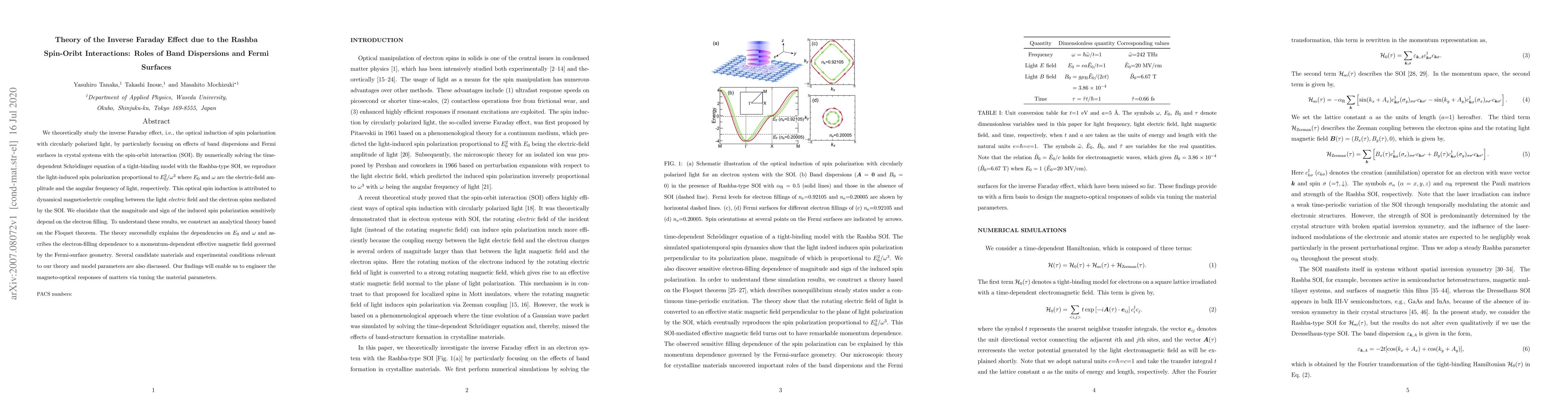 We theoretically study the inverse Faraday effect, i.e., the optical induction of spin polarization with circularly polarized light, by particularly focusing on effects of band dispersions and Fermi surfaces in crystal systems with the spin-orbit interaction (SOI). By numerically solving the time-dependent Schr\"odinger equation of a tight-binding model with the Rashba-type SOI, we reproduce the light-induced spin polarization proportional to $E_0^2/\omega^3$ where $E_0$ and $\omega$ are the electric-field amplitude and the angular frequency of light, respectively. This optical spin induction is attributed to dynamical magnetoelectric coupling between the light electric field and the electron spins mediated by the SOI. We elucidate that the magnitude and sign of the induced spin polarization sensitively depend on the electron filling. To understand these results, we construct an analytical theory based on the Floquet theorem. The theory successfully explains the dependencies on $E_0$ and $\omega$ and ascribes the electron-filling dependence to a momentum-dependent effective magnetic field governed by the Fermi-surface geometry. Several candidate materials and experimental conditions relevant to our theory and model parameters are also discussed. Our findings will enable us to engineer the magneto-optical responses of matters via tuning the material parameters.