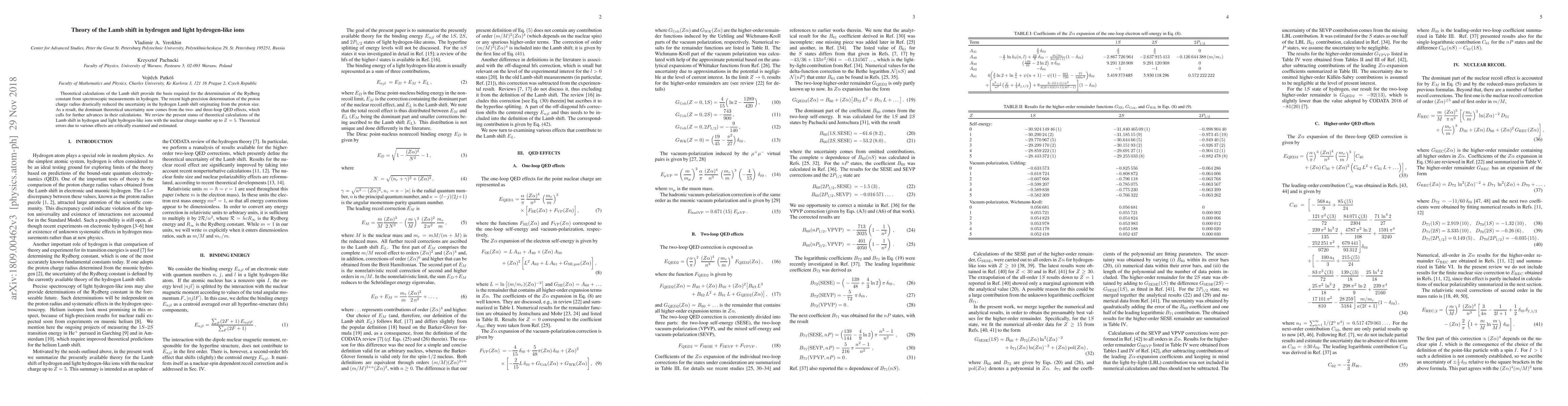 Detailed examination and estimation of theoretical errors from various effects contributing to the Lamb shift in hydrogen and light hydrogen-like ions.
