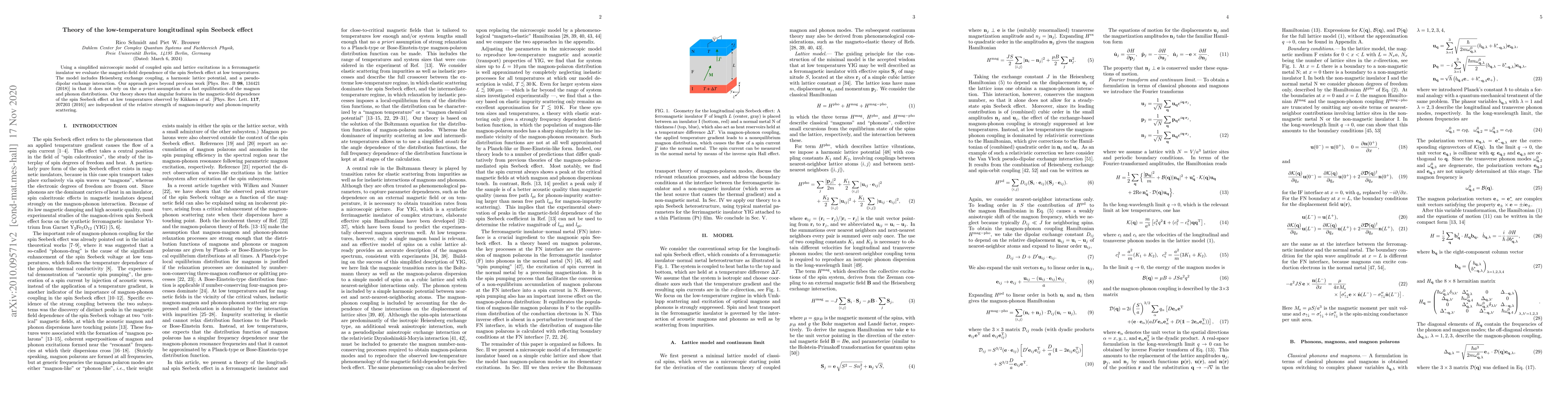 Using a simplified microscopic model of coupled spin and lattice excitations in a ferromagnetic insulator we evaluate the magnetic-field dependence of the spin Seebeck effect at low temperatures. The model includes Heisenberg exchange coupling, a harmonic lattice potential, and a pseudo-dipolar exchange interaction. Our approach goes beyond previous work [Phys. Rev. B 98, 134421 (2018)] in that it does not rely on the a priori assumption of a fast equilibration of the magnon and phonon distributions. Our theory shows that singular features in the magnetic-field dependence of the spin Seebeck effect at low temperatures observed by Kikkawa et al. [Phys. Rev. Lett. 117, 207203 (2016)] are independent of the relative strength of magnon-impurity and phonon-impurity scattering.