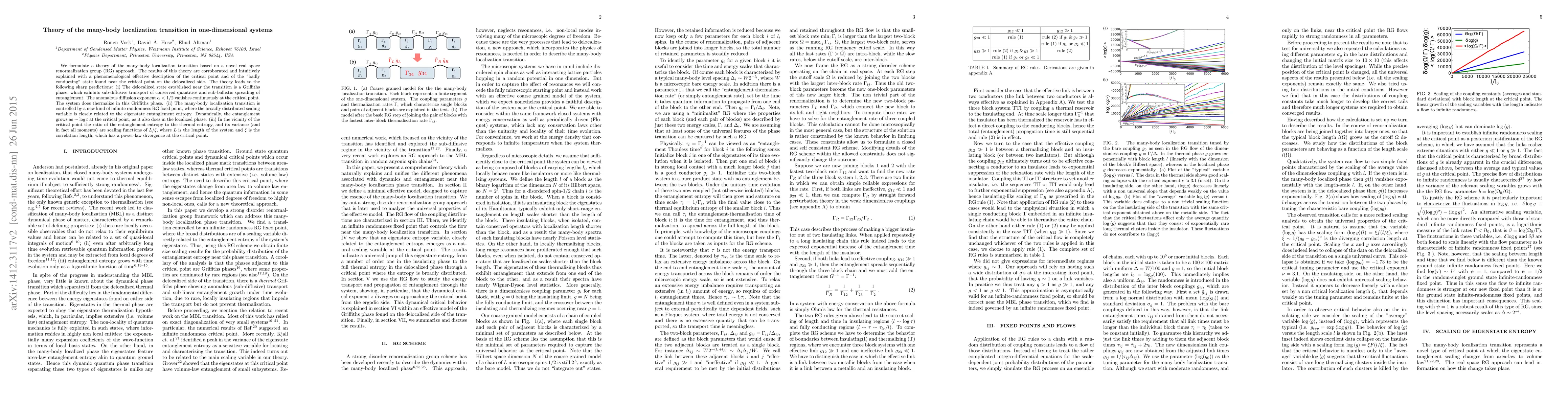 This paper proposes a novel real space renormalization group theory for the many-body localization transition in one-dimensional systems, predicting a Griffiths phase with sub-diffusive transport and continuous vanishing of the anomalous diffusion exponent at the critical point. The theory identifies a new infinite randomness fixed point linked to eigenstate entanglement entropy.