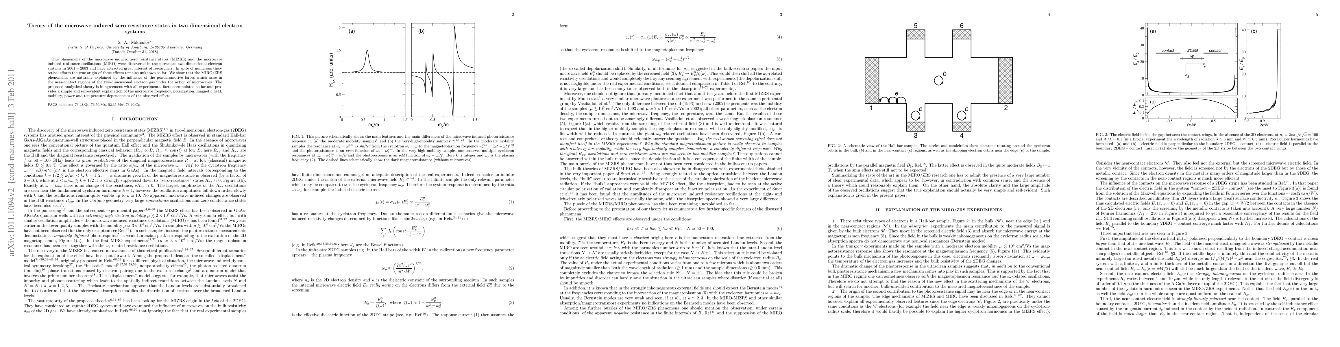 This paper proposes a theory explaining microwave-induced zero resistance states (MIZRS) and resistance oscillations (MIRO) in ultraclean two-dimensional electron systems, attributing these phenomena to ponderomotive forces in near-contact regions under microwave influence, and aligns with experimental observations.