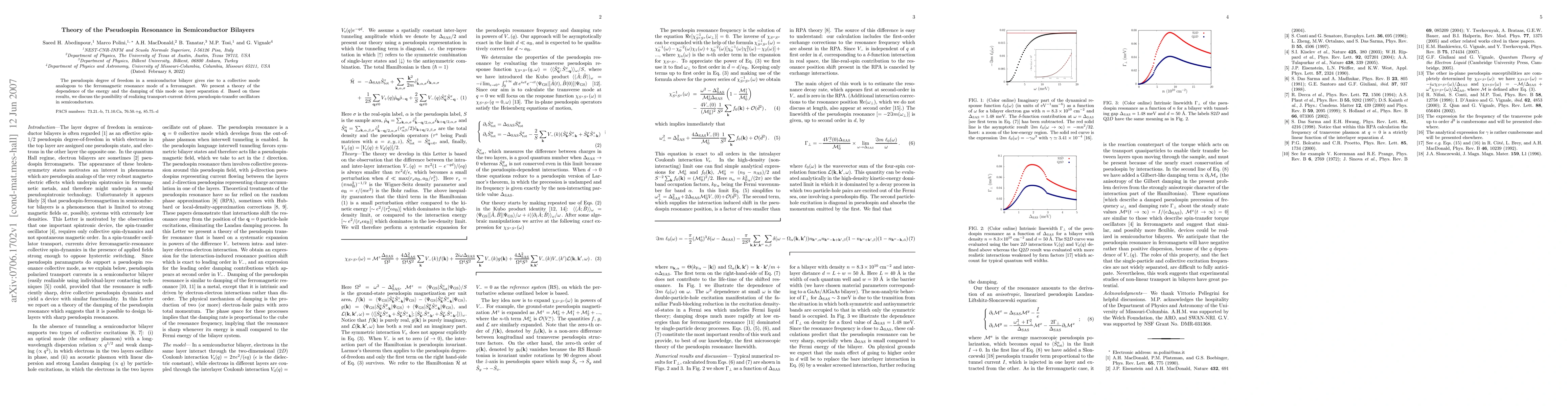 This paper develops a theoretical framework for pseudospin resonance in semiconductor bilayers, analyzing how energy and damping of the pseudospin mode vary with layer separation. It also explores potential applications in creating transport-current driven pseudospin-transfer oscillators.