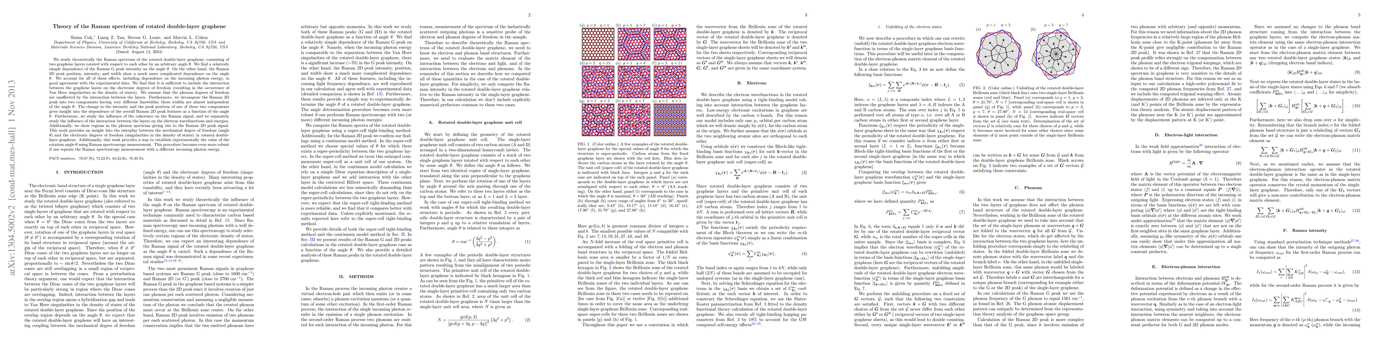 This paper theoretically investigates the Raman spectrum of rotated double-layer graphene, finding a simple dependence of the G peak intensity on the rotation angle θ, while the 2D peak's position, intensity, and width exhibit complex angle-dependent behavior. The study provides a method to determine the rotation angle θ using Raman spectroscopy, enhanced by varying the incoming photon energy.