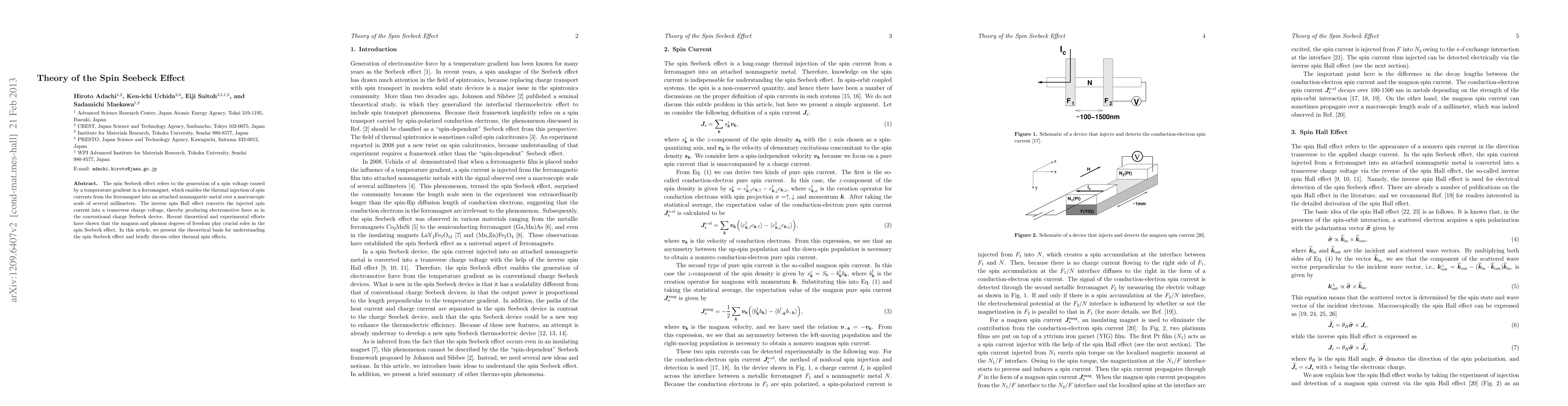 The spin Seebeck effect generates a spin voltage via temperature gradients in ferromagnets, enabling spin current flow into nonmagnetic metals, which is converted to charge voltage through the inverse spin Hall effect. This paper outlines the theoretical framework for the spin Seebeck effect, emphasizing the roles of magnons and phonons.