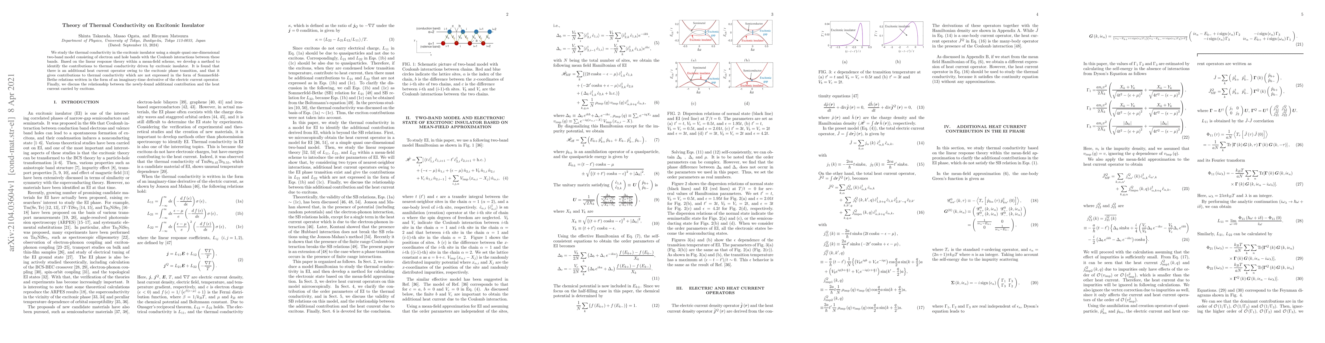 Researchers study thermal conductivity in an excitonic insulator using a simplified model and find an additional heat current operator contributing to thermal conductivity beyond conventional Sommerfeld-Bethe relations.
