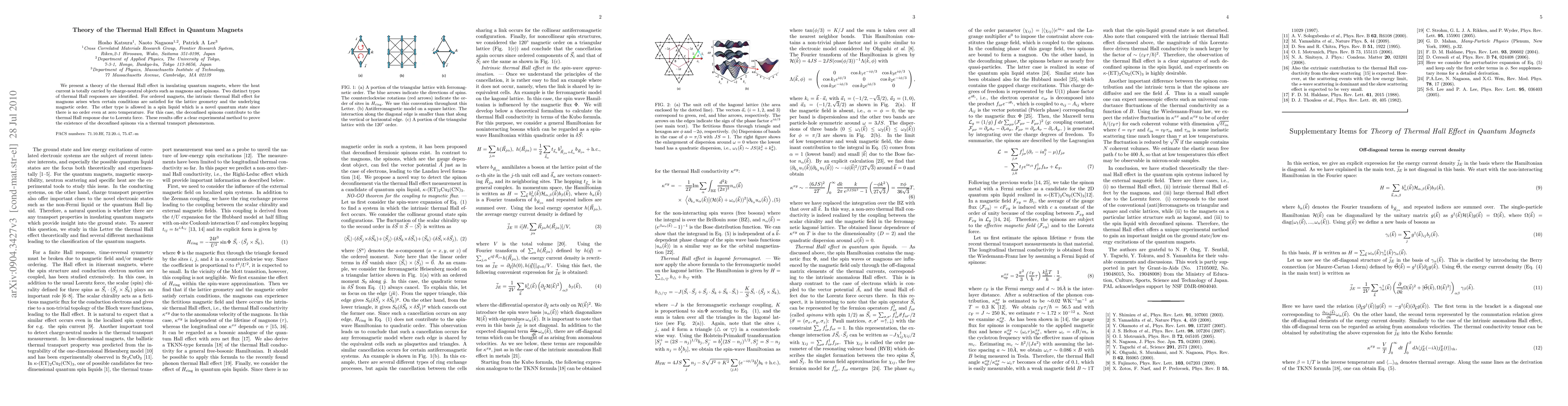 The research presents a theory of the thermal Hall effect in insulating quantum magnets, identifying two distinct types of thermal Hall responses. It analyzes ordered magnets for intrinsic thermal Hall effect due to magnons and spin liquids for thermal Hall response from deconfined spinons.