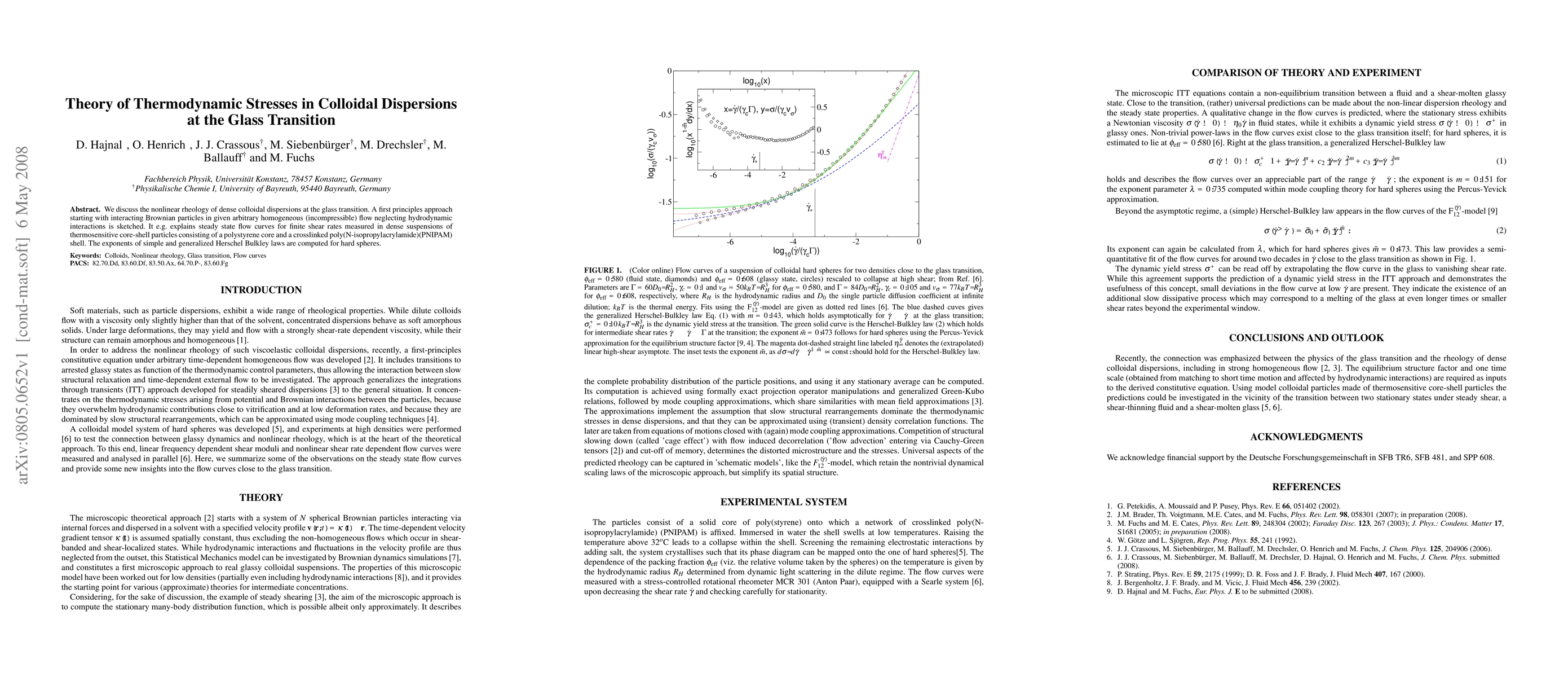 We discuss the nonlinear rheology of dense colloidal dispersions at the glass transition. A first principles approach starting with interacting Brownian particles in given arbitrary homogeneous (incompressible) flow neglecting hydrodynamic interactions is sketched. It e.g. explains steady state flow curves for finite shear rates measured in dense suspensions of thermosensitive core-shell particles consisting of a polystyrene core and a crosslinked poly(N-isopropylacrylamide)(PNIPAM) shell. The exponents of simple and generalized Herschel Bulkley laws are computed for hard spheres.
