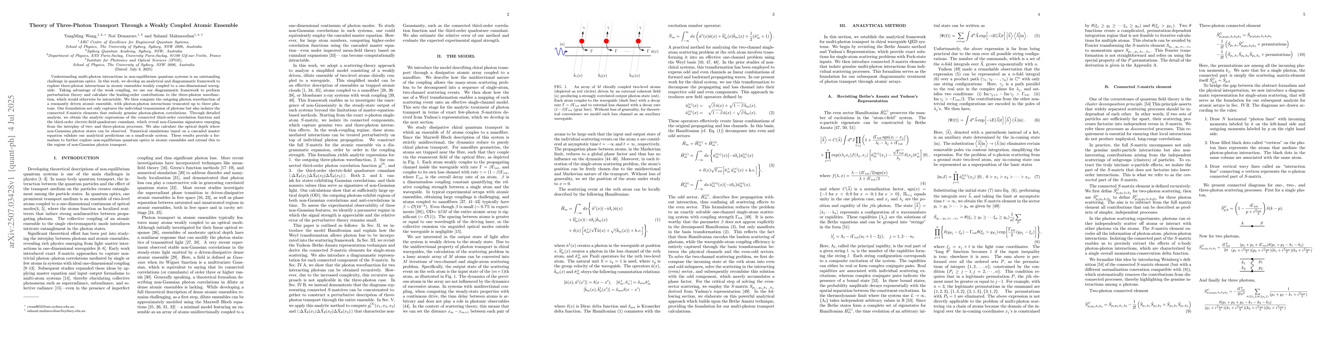 Understanding multi-photon interactions in non-equilibrium quantum systems is an outstanding challenge in quantum optics. In this work, we develop an analytical and diagrammatic framework to explore three-photon interactions in atomic ensembles weakly coupled to a one-dimensional waveguide. Taking advantage of the weak coupling, we use our diagrammatic framework to perform perturbation theory and calculate the leading-order contributions to the three-photon wavefunction, which would otherwise be intractable. We then compute the outgoing photon wavefunction of a resonantly driven atomic ensemble, with photon-photon interactions truncated up to three photons. Our formulation not only captures the individual transmission of photons but also isolates the connected S-matrix elements that embody genuine photon-photon correlations. Through detailed analysis, we obtain the analytic expressions of the connected third-order correlation function and the third-order electric-field-quadrature cumulant, which reveal non-Gaussian signatures emerging from the interplay of two- and three-photon processes. We also calculate the optical depth where non-Gaussian photon states can be observed. Numerical simulations based on a cascaded master equation validate our analytical predictions on a small-scale system. These results provide a formalism to further explore non-equilibrium quantum optics in atomic ensembles and extend this to the regime of non-Gaussian photon transport.