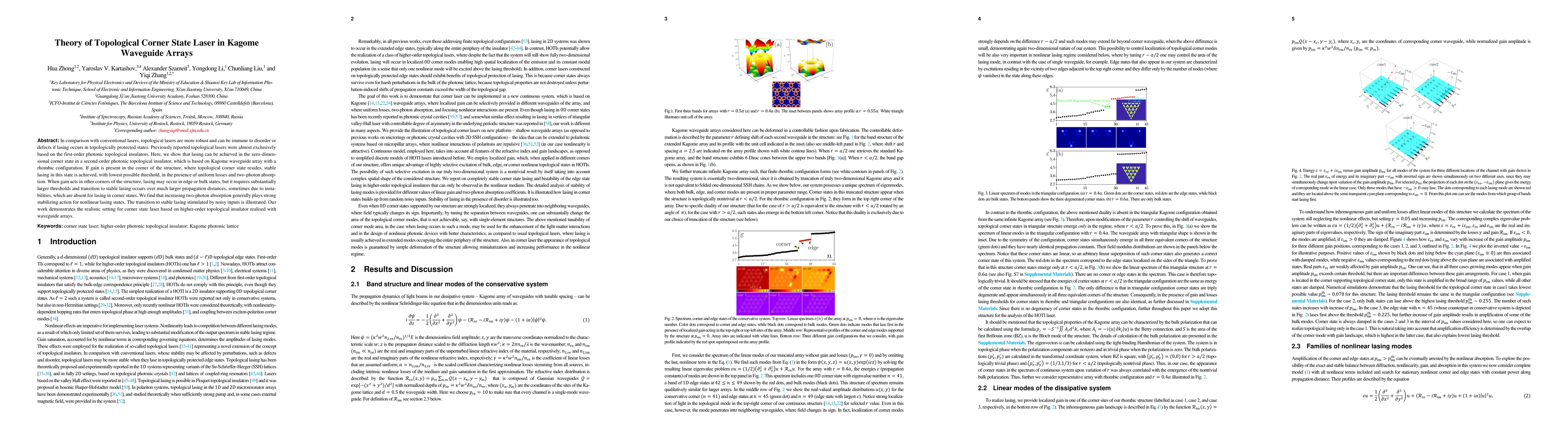 This paper demonstrates the feasibility of topological corner state lasers in a Kagome waveguide array, showing that lasing in these zero-dimensional states is more robust and requires lower thresholds compared to edge or bulk states. The study highlights the stabilizing effects of two-photon absorption and the potential for stable lasing in the presence of disorder.