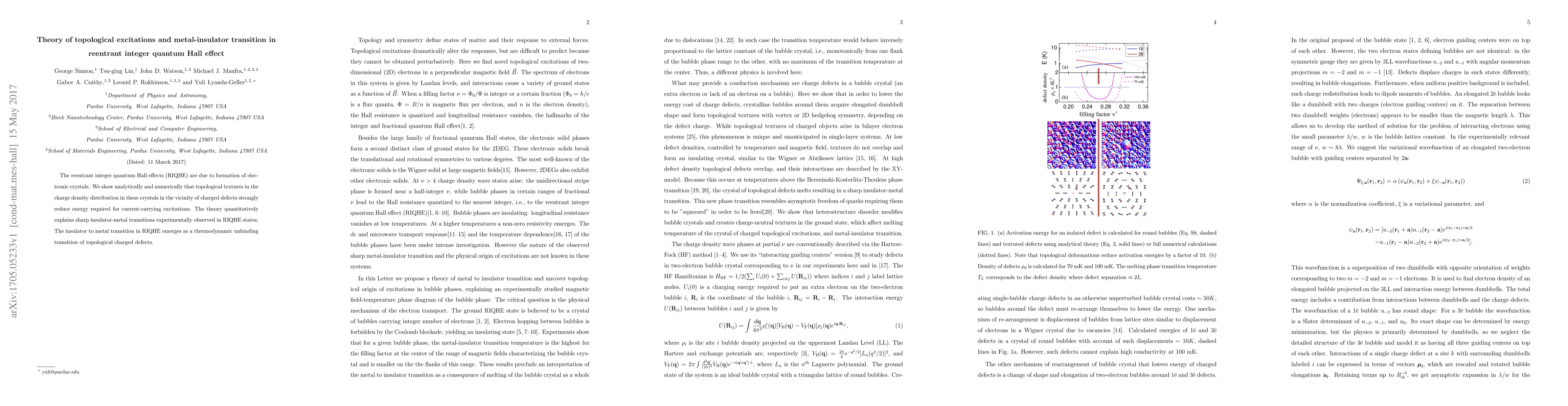 This paper presents a theory explaining the reentrant integer quantum Hall effect (RIQHE) due to electronic crystals, showing that topological textures near charged defects reduce energy for current-carrying excitations. The quantitative theory accounts for experimentally observed sharp insulator-metal transitions in RIQHE states, attributing the transition to the thermodynamic unbinding of topological charged defects.