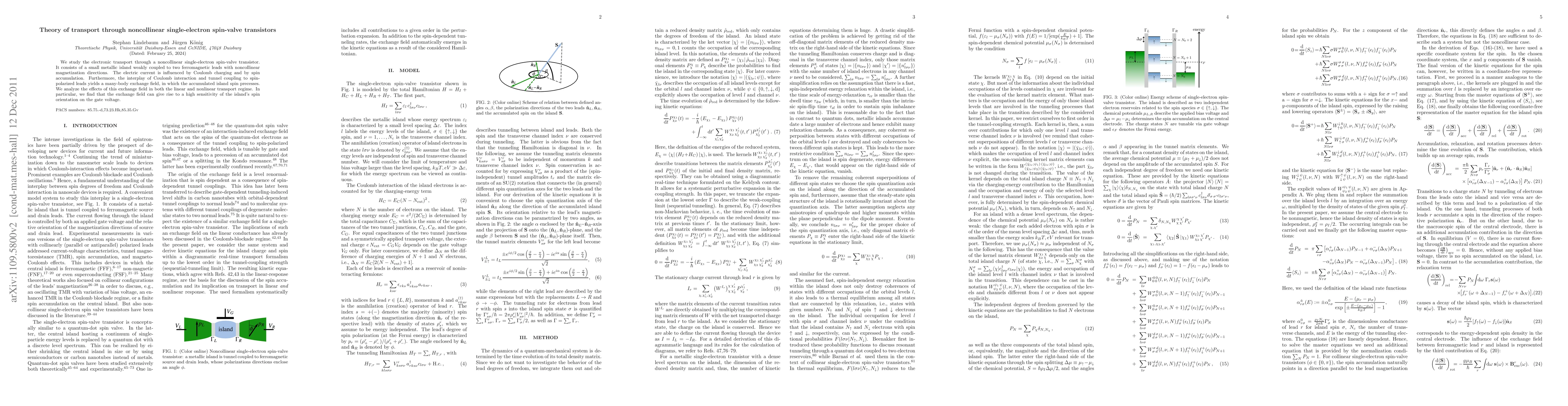 We study the electronic transport through a noncollinear single-electron spin-valve transistor. It consists of a small metallic island weakly coupled to two ferromagnetic leads with noncollinear magnetization directions. The electric current is influenced by Coulomb charging and by spin accumulation. Furthermore, the interplay of Coulomb interaction and tunnel coupling to spin-polarized leads yields a many-body exchange field, in which the accumulated island spin precesses. We analyze the effects of this exchange field in both the linear and nonlinear transport regime. In particular, we find that the exchange field can give rise to a high sensitivity of the island's spin orientation on the gate voltage.
