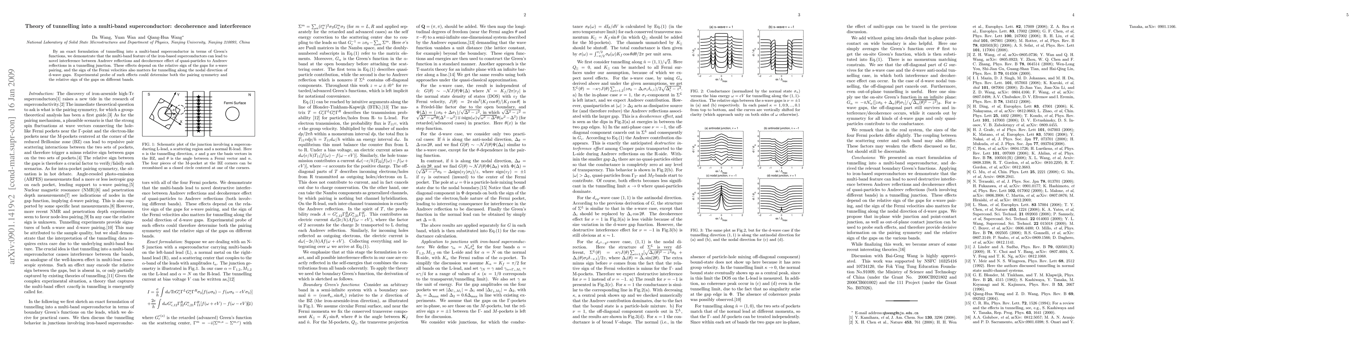 This paper explores tunnelling into multi-band superconductors using Green's functions, revealing novel interference and decoherence effects due to Andreev reflections. The study highlights the significance of the relative sign of gaps and Fermi velocities in determining these effects, which could aid in identifying pairing symmetry and gap signs experimentally.