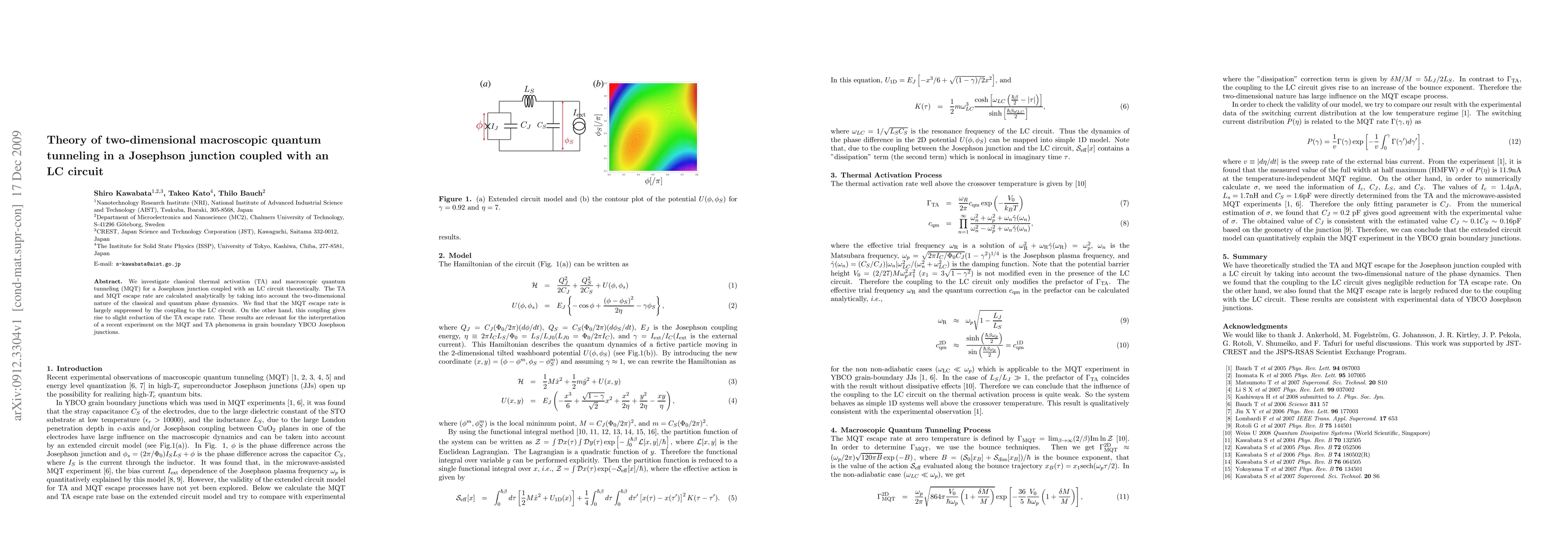 We investigate classical thermal activation (TA) and macroscopic quantum tunneling (MQT) for a Josephson junction coupled with an LC circuit theoretically. The TA and MQT escape rate are calculated analytically by taking into account the two-dimensional nature of the classical and quantum phase dynamics. We find that the MQT escape rate is largely suppressed by the coupling to the LC circuit. On the other hand, this coupling gives rise to slight reduction of the TA escape rate. These results are relevant for the interpretation of a recent experiment on the MQT and TA phenomena in grain boundary YBCO Josephson junctions.