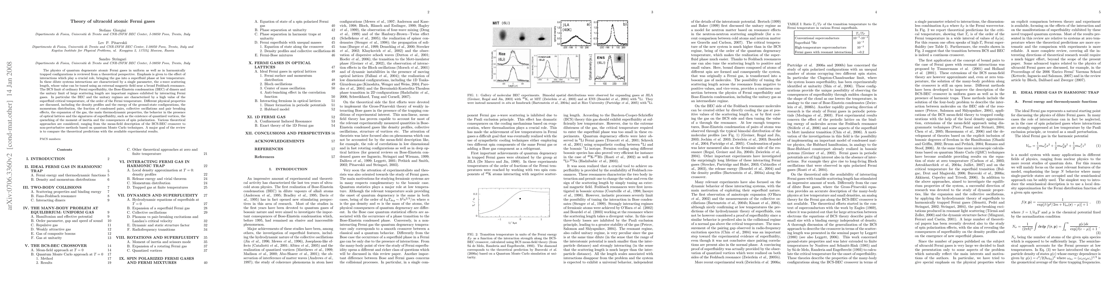 This paper reviews theoretical aspects of ultracold Fermi gases, focusing on the impact of interactions that lead to superfluid phases. It discusses various regimes, including BCS, BEC, and unitary limits, and compares theoretical predictions with experimental results, highlighting properties like density profiles, thermodynamic behavior, and signatures of superfluidity.