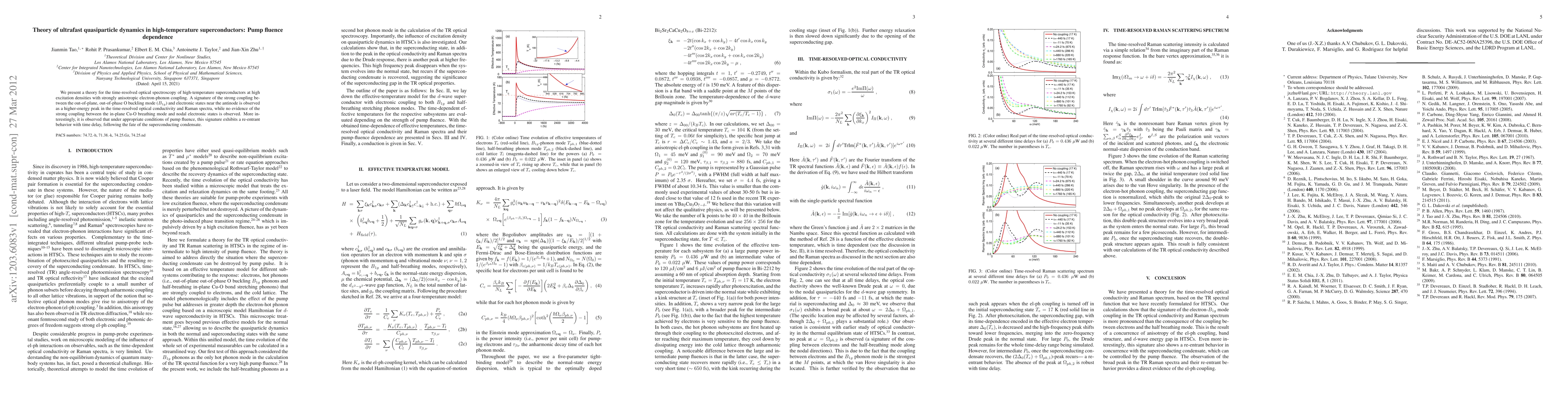 This paper develops a theory for ultrafast optical spectroscopy in high-temperature superconductors, highlighting the strong coupling between the out-of-plane O buckling mode and electronic states near the antinode. It reveals a re-entrant behavior in the superconducting condensate's signature under specific pump fluence conditions.