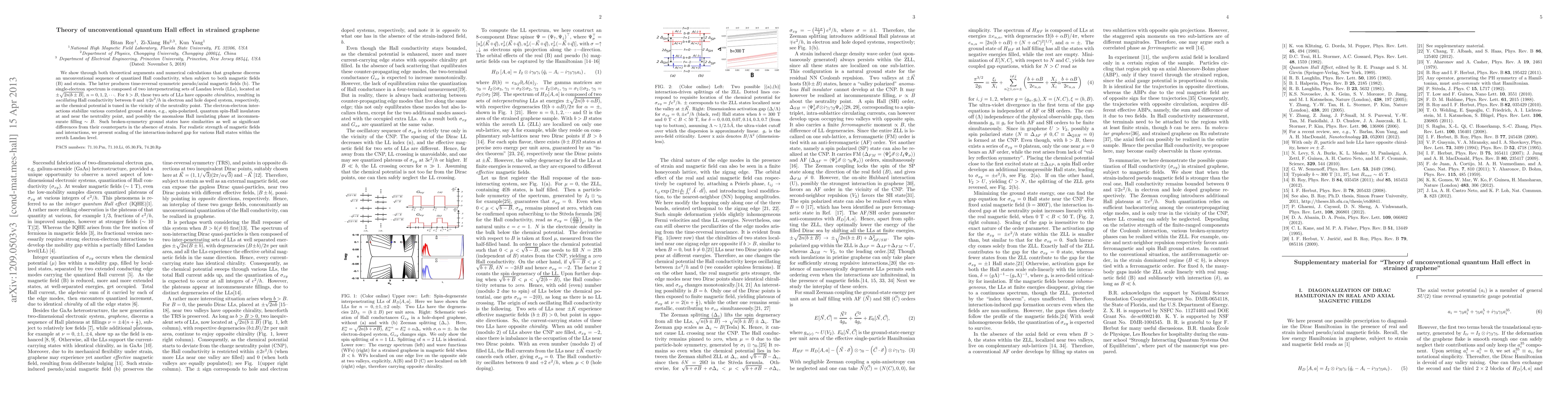 We show through both theoretical arguments and numerical calculations that graphene discerns an unconventional sequence of quantized Hall conductivity, when subject to both magnetic fields (B) and strain. The latter produces time-reversal symmetric pseudo/axial magnetic fields (b). The single-electron spectrum is composed of two interpenetrating sets of Landau levels (LLs), located at $\pm \sqrt{2 n |b \pm B|}$, $n=0, 1, 2, \cdots$. For $b>B$, these two sets of LLs have opposite \emph{chiralities}, resulting in {\em oscillating} Hall conductivity between 0 and $\mp 2 e^2/h$ in electron and hole doped system, respectively, as the chemical potential is tuned in the vicinity of the neutrality point. The electron-electron interactions stabilize various correlated ground states, e.g., spin-polarized, quantum spin-Hall insulators at and near the neutrality point, and possibly the anomalous Hall insulating phase at incommensurate filling $\sim B$. Such broken-symmetry ground states have similarities as well as significant differences from their counterparts in the absence of strain. For realistic strength of magnetic fields and interactions, we present scaling of the interaction-induced gap for various Hall states within the zeroth Landau level.
