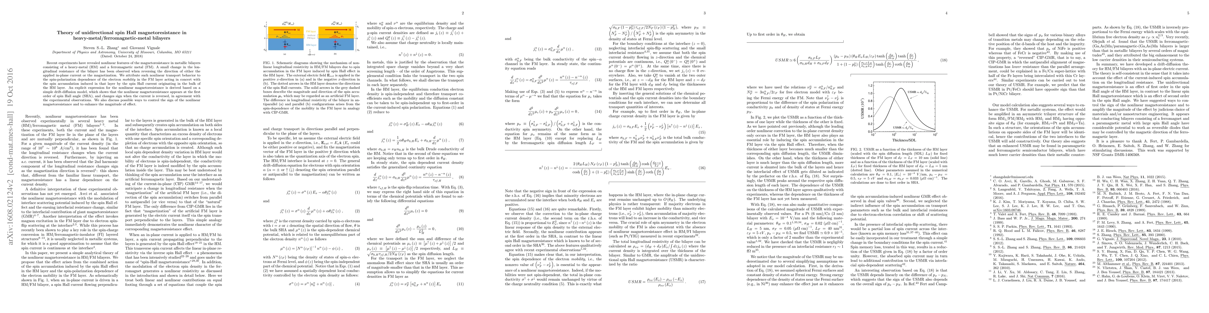 The paper presents a theoretical framework for understanding unidirectional spin Hall magnetoresistance in heavy-metal/ferromagnetic-metal bilayers, providing explicit expressions and insights into controlling this effect.
