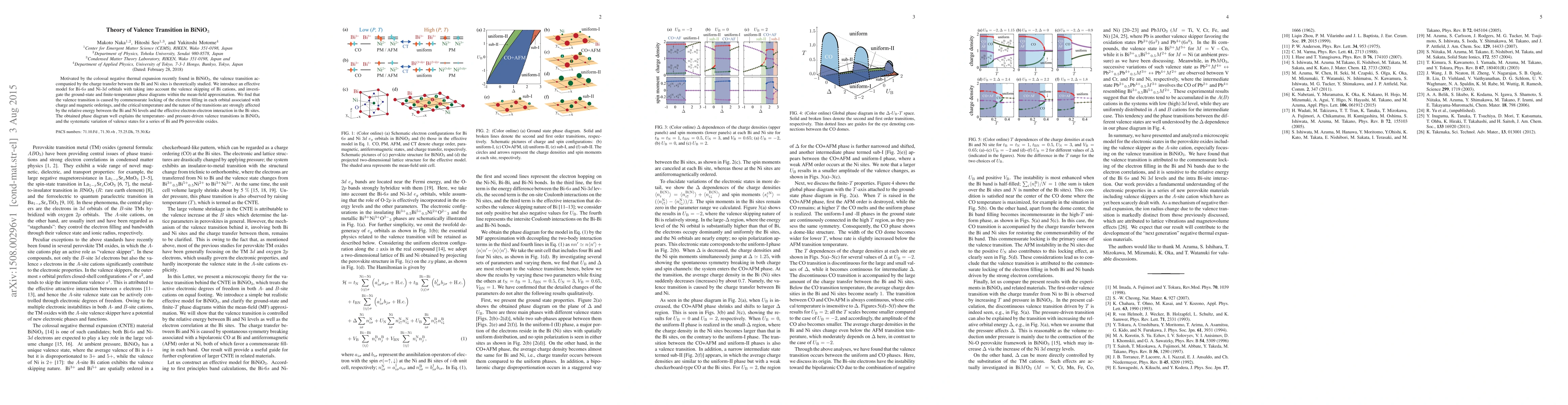 Motivated by the colossal negative thermal expansion recently found in BiNiO$_3$, the valence transition accompanied by the charge transfer between the Bi and Ni sites is theoretically studied. We introduce an effective model for Bi-$6s$ and Ni-$3d$ orbitals with taking into account the valence skipping of Bi cations, and investigate the ground-state and finite-temperature phase diagrams within the mean-field approximation. We find that the valence transition is caused by commensurate locking of the electron filling in each orbital associated with charge and magnetic orderings, and the critical temperature and the nature of the transitions are strongly affected by the relative energy between the Bi and Ni levels and the effective electron-electron interaction in the Bi sites. The obtained phase diagram well explains the temperature- and pressure-driven valence transitions in BiNiO$_3$ and the systematic variation of valence states for a series of Bi and Pb perovskite oxides.