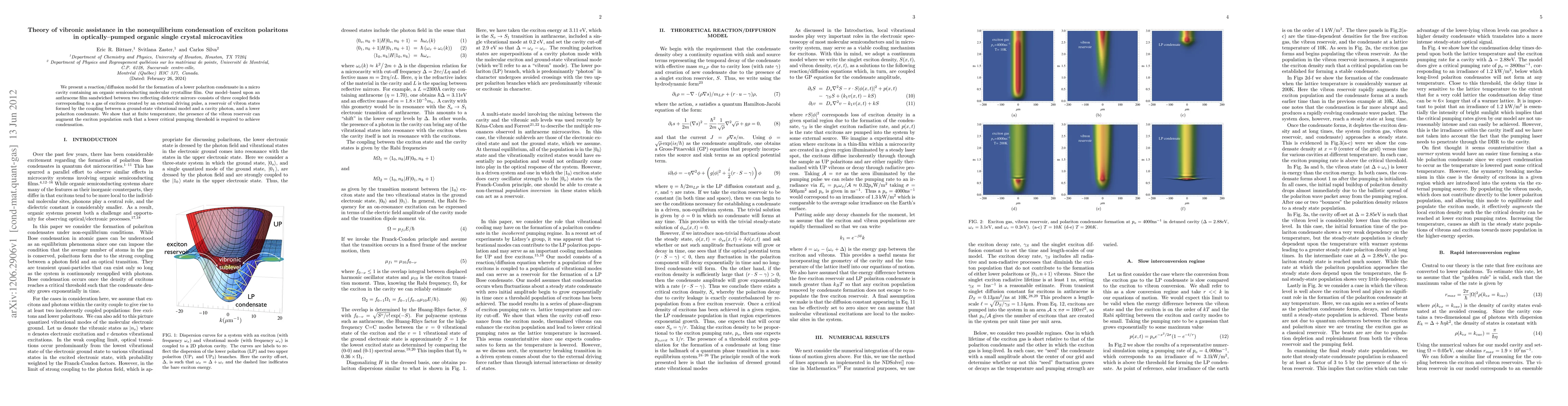 We present a reaction/diffusion model for the formation of a lower polariton condensate in a micro cavity containing an organic semiconducting molecular crystalline film. Our model--based upon an anthracene film sandwiched between two reflecting dielectric mirrors--consists of three coupled fields corresponding to a gas of excitons created by an external driving pulse, a reservoir of vibron states formed by the coupling between a ground-state vibrational model and a cavity photon, and a lower polariton condensate. We show that at finite temperature, the presence of the vibron reservoir can augment the exciton population such that a lower critical pumping threshold is required to achieve condensation.