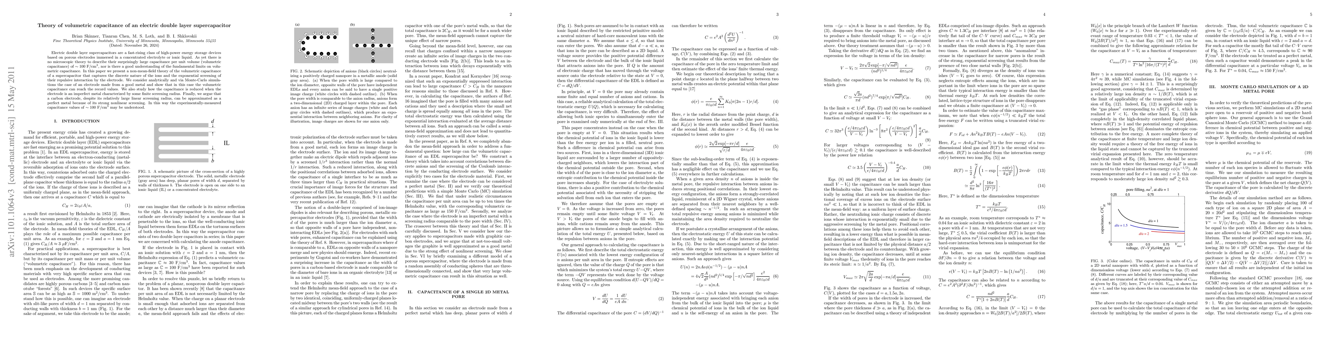 This paper develops a non-mean-field theory to explain the high volumetric capacitance of electric double-layer supercapacitors, showing that a perfect metal electrode can achieve record capacitance values, while imperfect metals and carbon electrodes exhibit reduced but still significant capacitance due to nonlinear screening effects.