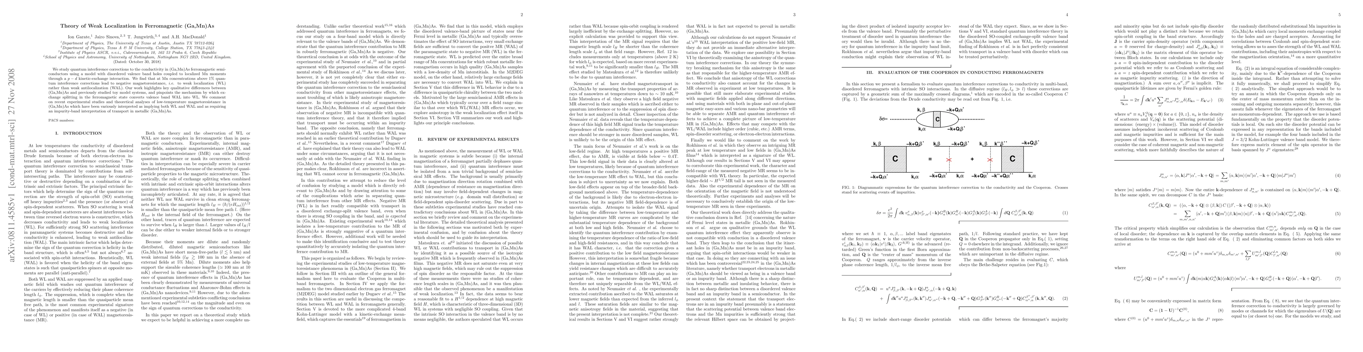 This research investigates quantum interference effects in (Ga,Mn)As ferromagnetic semiconductors, revealing that above 1% Mn concentration, weak localization (WL) rather than weak antilocalization (WAL) occurs due to kinetic-exchange interaction. It highlights differences from other systems and the mechanism of exchange splitting converting WAL to WL.