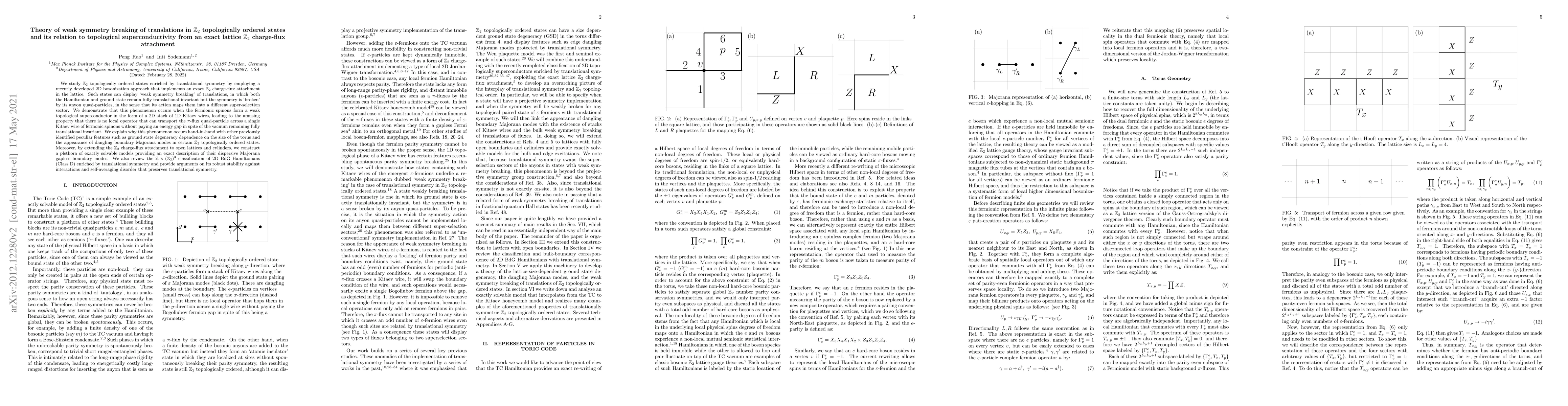 We study $\mathbb{Z}_2$ topologically ordered states enriched by translational symmetry by employing a recently developed 2D bosonization approach that implements an exact $\mathbb{Z}_2$ charge-flux attachment in the lattice. Such states can display `weak symmetry breaking' of translations, in which both the Hamiltonian and ground state remain fully translational invariant but the symmetry is `broken' by its anyon quasi-particles, in the sense that its action maps them into a different super-selection sector. We demonstrate that this phenomenon occurs when the fermionic spinons form a weak topological superconductor in the form of a 2D stack of 1D Kitaev wires, leading to the amusing property that there is no local operator that can transport the $\pi$-flux quasi-particle across a single Kitaev wire of fermonic spinons without paying an energy gap in spite of the vacuum remaining fully translational invariant. We explain why this phenomenon occurs hand-in-hand with other previously identified peculiar features such as ground state degeneracy dependence on the size of the torus and the appearance of dangling boundary Majorana modes in certain $\mathbb{Z}_2$ topologically ordered states. Moreover, by extending the $\mathbb{Z}_2$ charge-flux attachment to open lattices and cylinders, we construct a plethora of exactly solvable models providing an exact description of their dispersive Majorana gapless boundary modes. We also review the $\mathbb{Z}\times (\mathbb{Z}_2)^3$ classification of 2D BdG Hamiltonians (Class D) enriched by translational symmetry and provide arguments on its robust stability against interactions and self-averaging disorder that preserves translational symmetry.