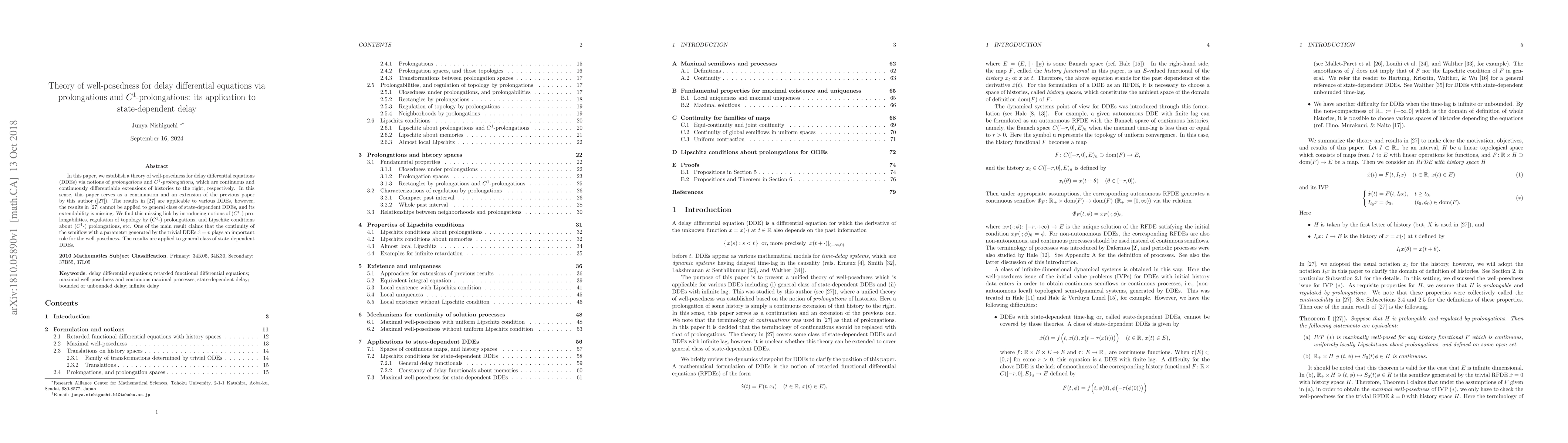This paper establishes a theory of well-posedness for delay differential equations via prolongations and C^1-prolongations, providing a framework for state-dependent DDEs.