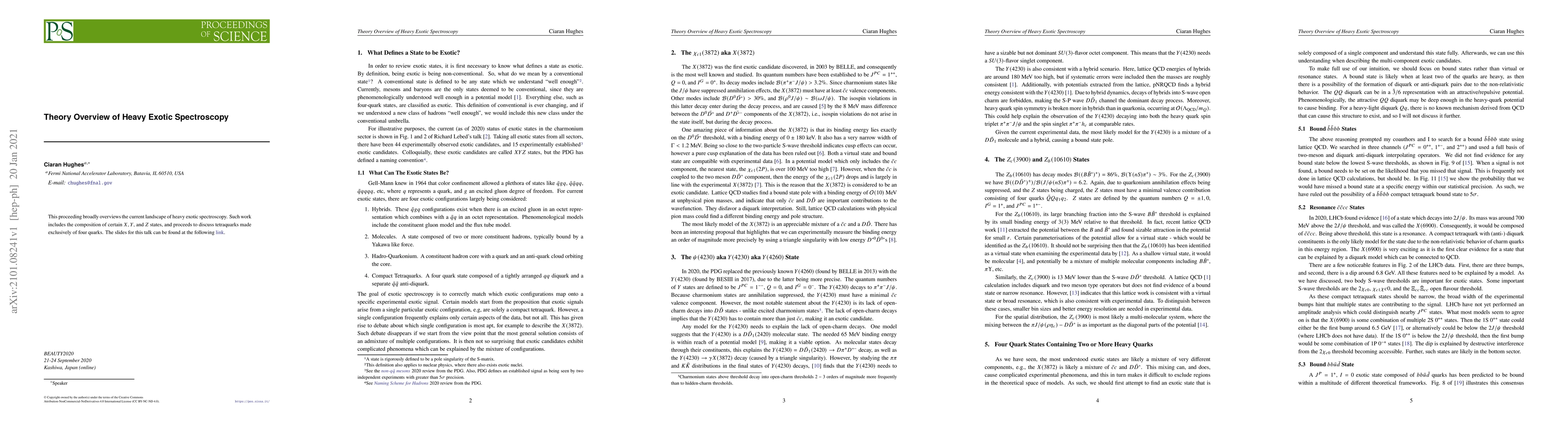This proceeding broadly overviews the current landscape of heavy exotic spectroscopy. Such work includes the composition of certain X, Y , and Z states, and proceeds to discuss tetraquarks made exclusively of four quarks.