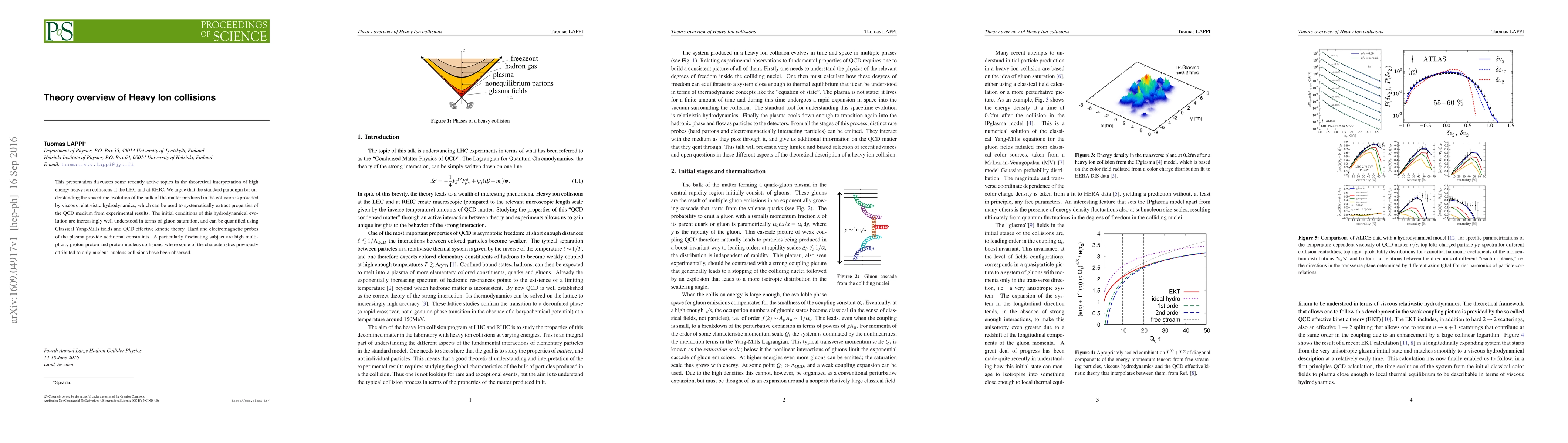 Researchers discuss the theoretical interpretation of heavy ion collisions, highlighting the role of viscous relativistic hydrodynamics in understanding the spacetime evolution of the matter produced in these collisions. They also explore new topics such as high multiplicity proton-proton and proton-nucleus collisions.