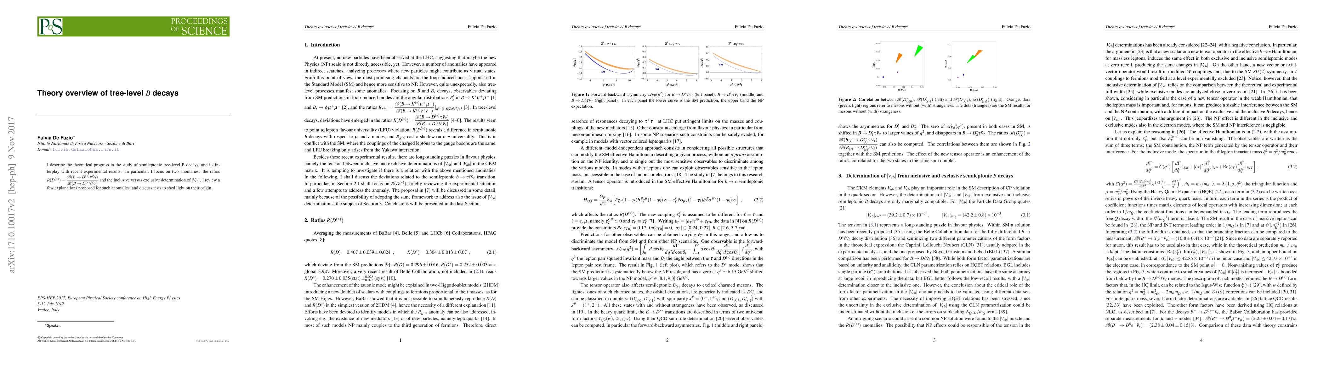 I describe the theoretical progress in the study of semileptonic tree-level B decays, and its interplay with recent experimental results. In particular, I focus on two anomalies: the ratios $R(D^{(*)})=\displaystyle\frac{{\cal B}(B \to D^{(*)} \tau \bar \nu_\tau)}{{\cal B}(B \to D^{(*)} \ell \bar \nu_\ell)}$ and the inclusive versus exclusive determination of $|V_{cb}|$. I review a few explanations proposed for such anomalies, and discuss tests to shed light on their origin.