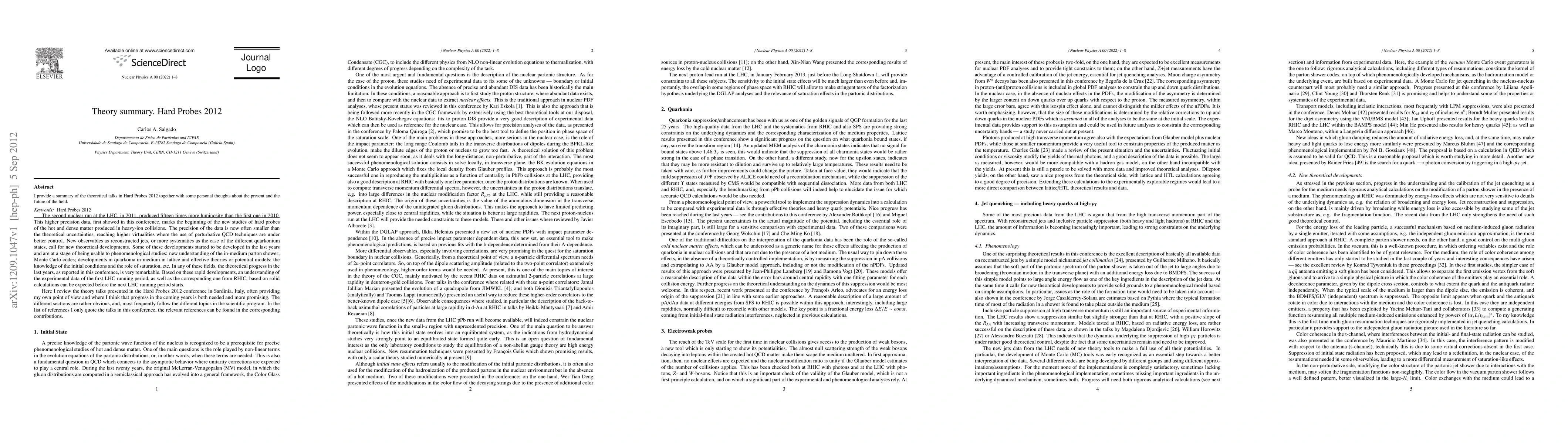 This paper summarizes key theoretical discussions from the Hard Probes 2012 conference, highlighting significant advancements and future directions in the field, along with personal insights from the author.