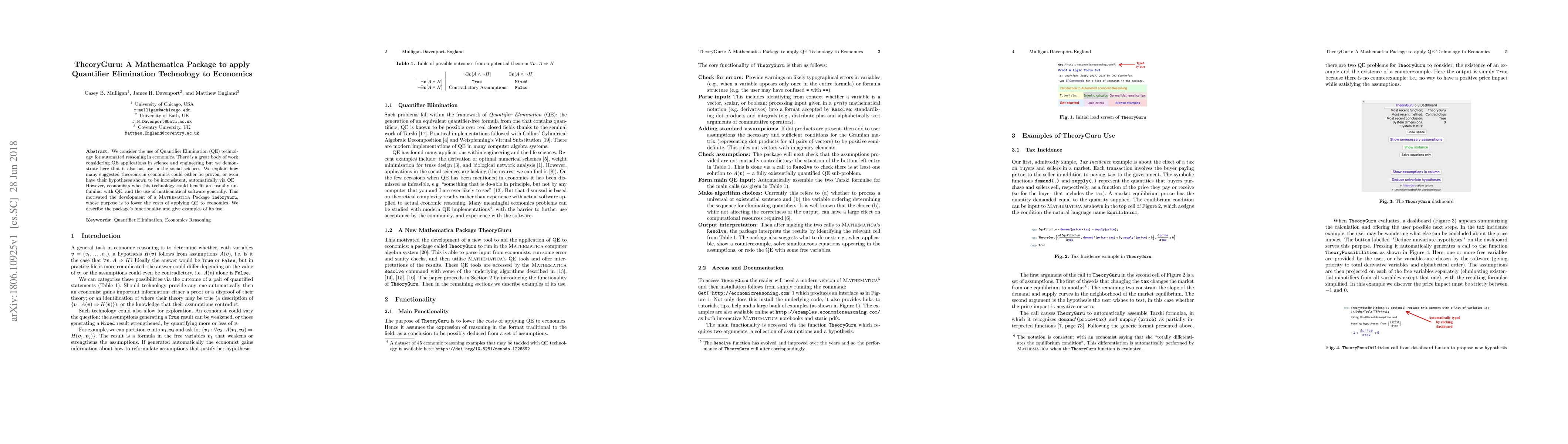We consider the use of Quantifier Elimination (QE) technology for automated reasoning in economics. There is a great body of work considering QE applications in science and engineering but we demonstrate here that it also has use in the social sciences. We explain how many suggested theorems in economics could either be proven, or even have their hypotheses shown to be inconsistent, automatically via QE. However, economists who this technology could benefit are usually unfamiliar with QE, and the use of mathematical software generally. This motivated the development of a Mathematica Package TheoryGuru, whose purpose is to lower the costs of applying QE to economics. We describe the package's functionality and give examples of its use.