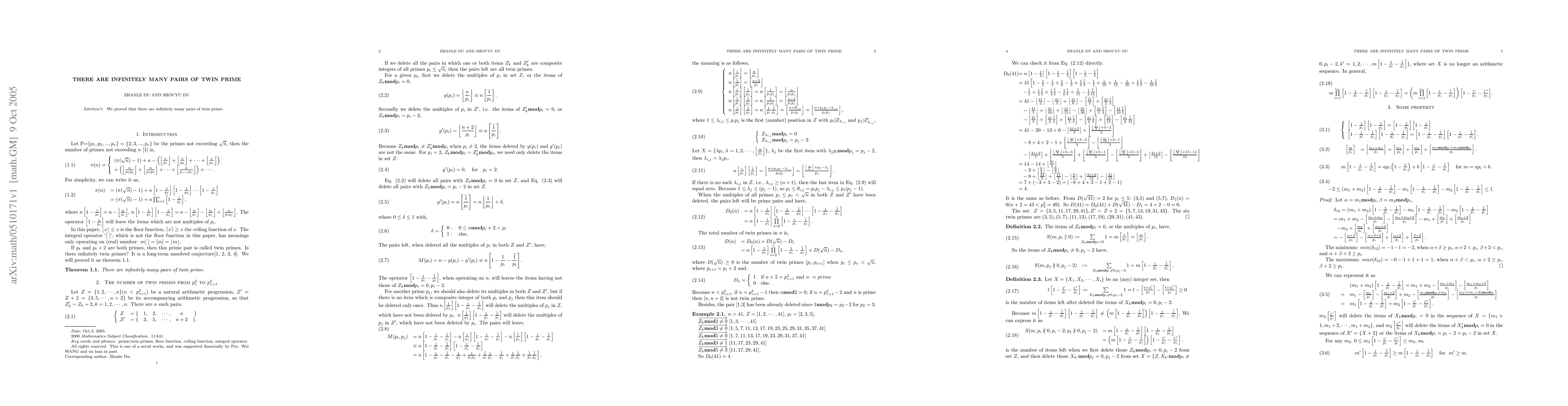 We proved that there are infinitely many pairs of twin prime.