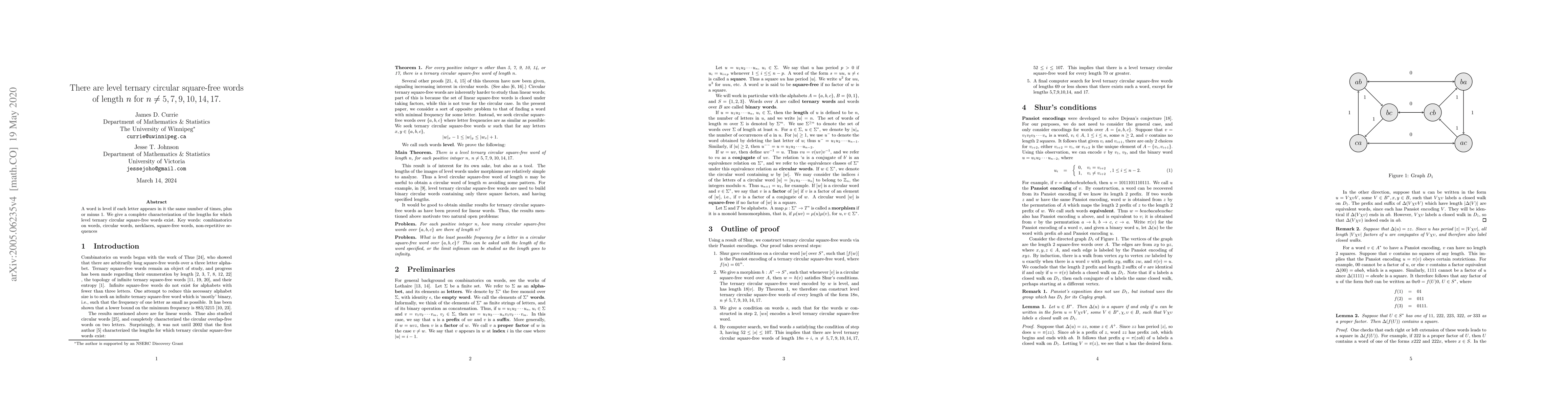 The paper introduces and utilizes a morphism h and Shur's conditions to prove the existence and non-existence of level ternary circular square-free words for specified lengths.