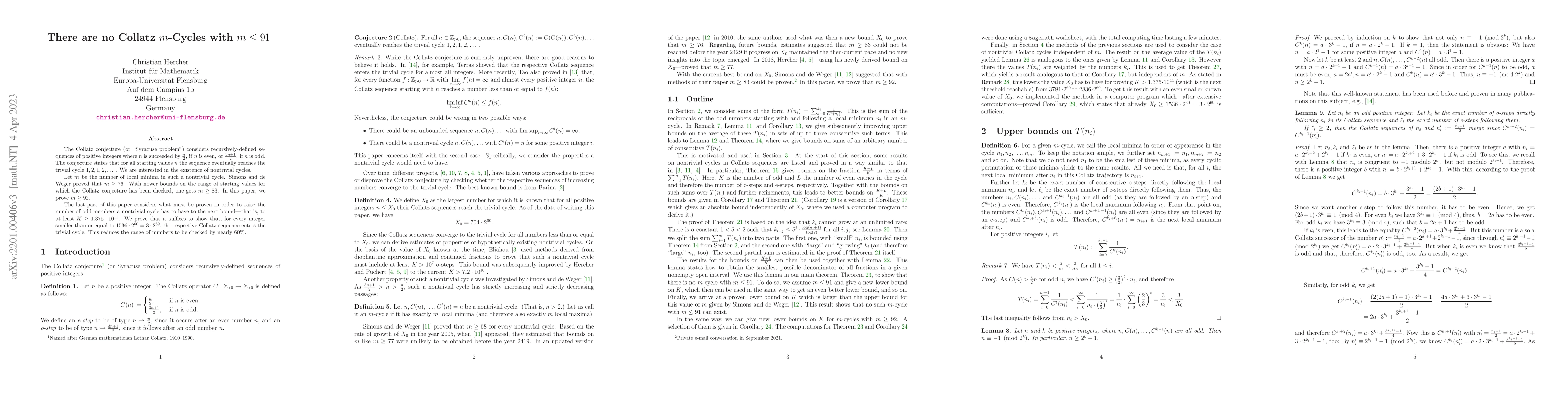 This paper proves that there are no Collatz-m-Cycles with $m \leq 91$ and establishes that $m$ must be at least 92 for any nontrivial cycle in the Collatz conjecture. It also shows that proving the conjecture for numbers up to $1536\cdot2^{60}$ would reduce the remaining range to be checked by nearly 60%.