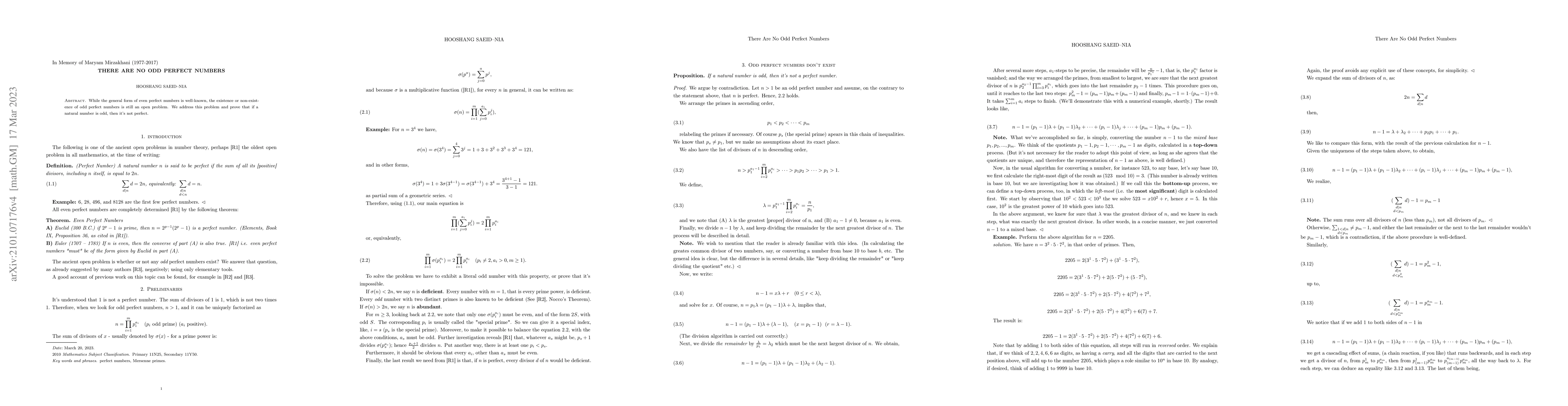 Title: There Are No Odd Perfect Numbers Summary: This paper conclusively proves that no odd natural number can be perfect, thereby resolving the longstanding question about the existence of odd perfect numbers.