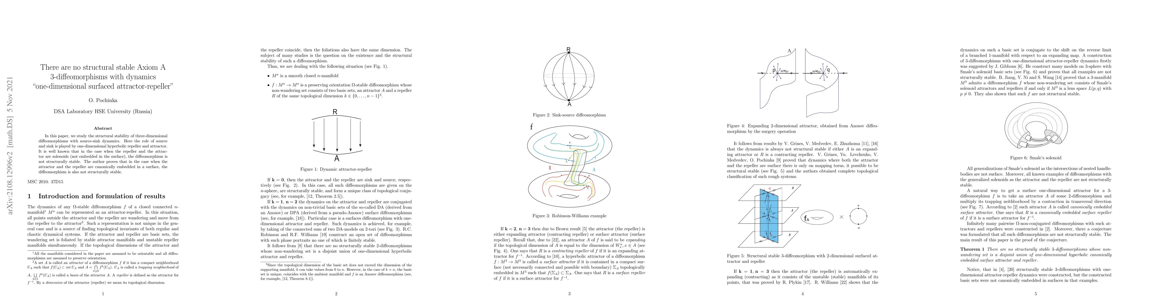 This paper demonstrates that three-dimensional diffeomorphisms with source-sink dynamics, where the source and sink are one-dimensional hyperbolic objects embedded in a surface, are not structurally stable. The author proves that even when these objects are embedded in a surface, the dynamics remain non-structurally stable.