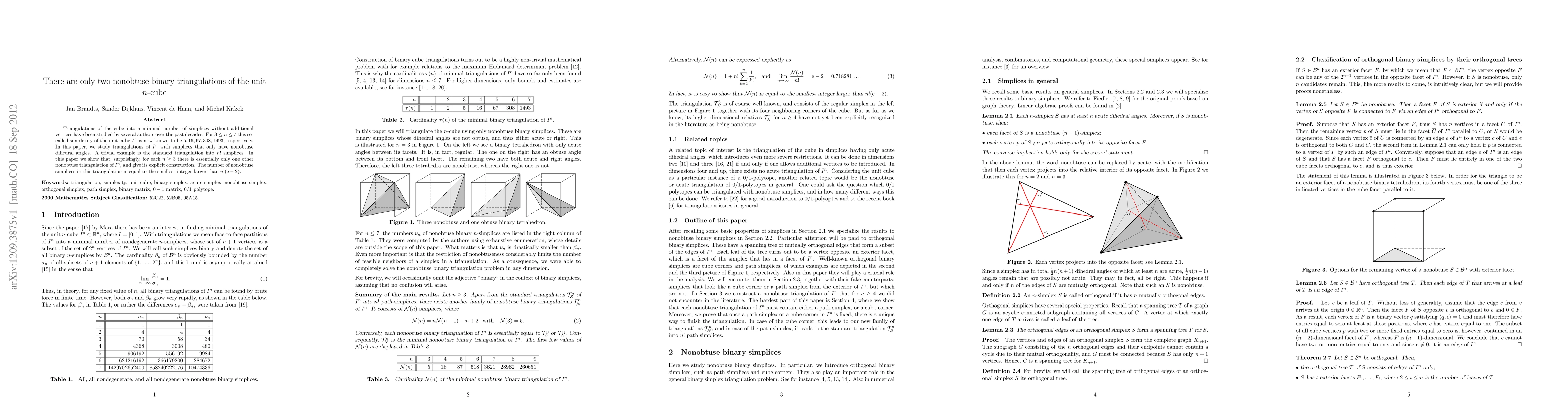 This paper explores triangulations of the unit $n$-cube $I^n$ into nonobtuse simplices, showing that for $n \geq 3$, there is only one non-trivial such triangulation besides the standard one, and provides its explicit construction. The number of simplices in this alternative triangulation is given by the smallest integer greater than $n!({\rm e}-2)$.