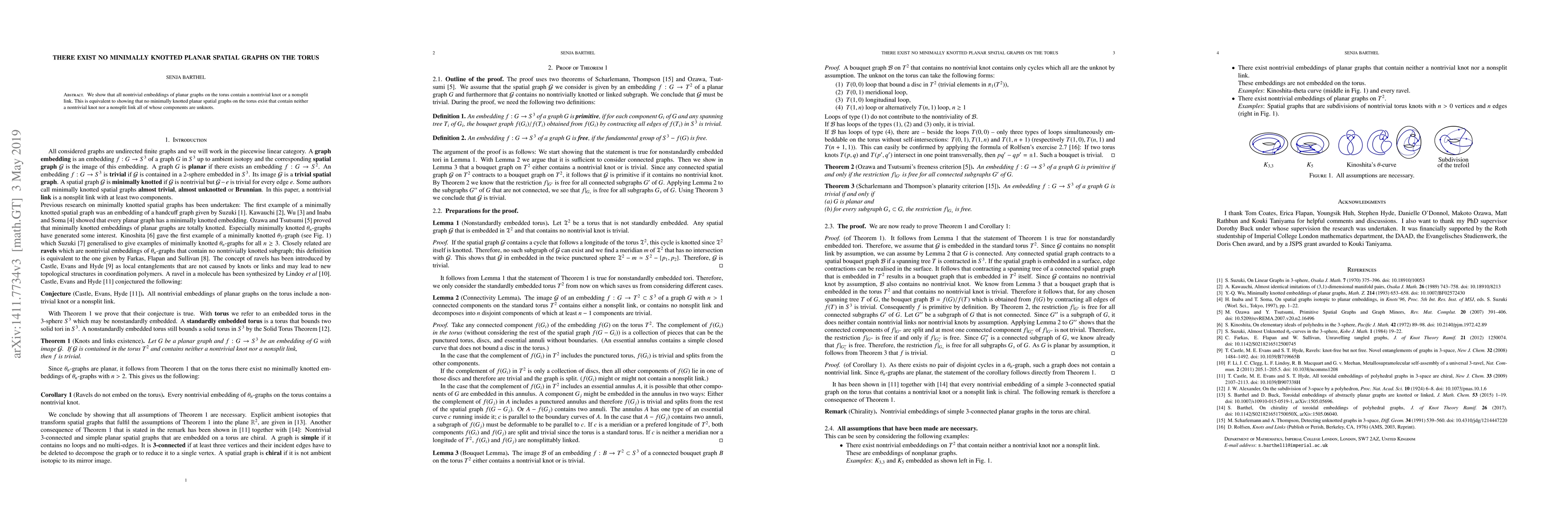 Summary: The paper demonstrates that any nontrivial planar graph embedded on a torus will inevitably include a nontrivial knot or a nonsplit link, thereby proving the nonexistence of minimally knotted planar spatial graphs on the torus.