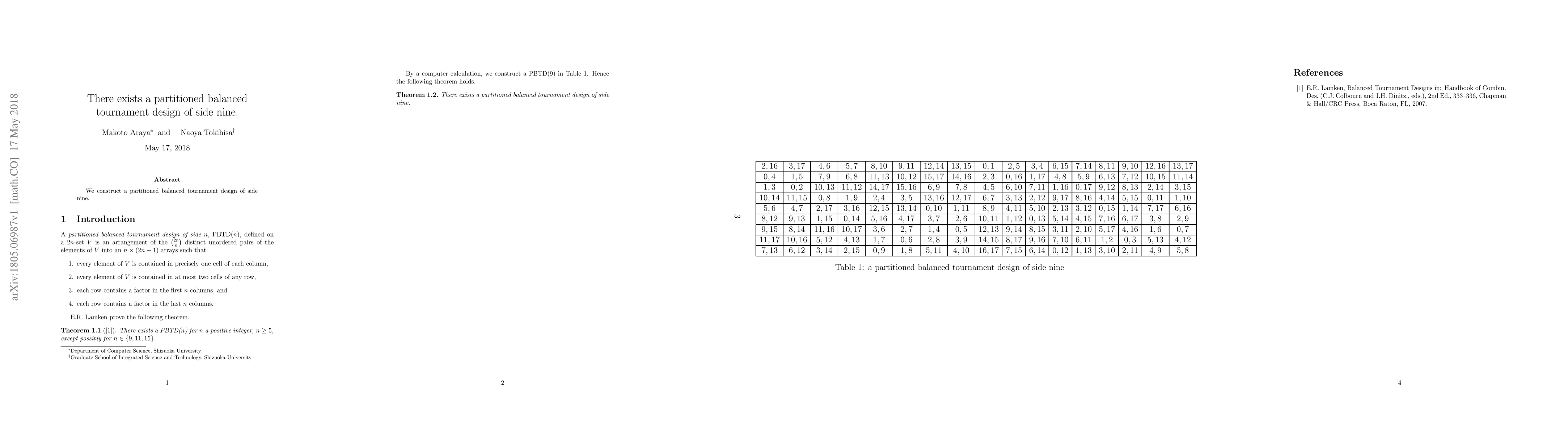 This design is considered 'partitioned' and 'balanced', indicating that it meets specific criteria for fairness and structure.
