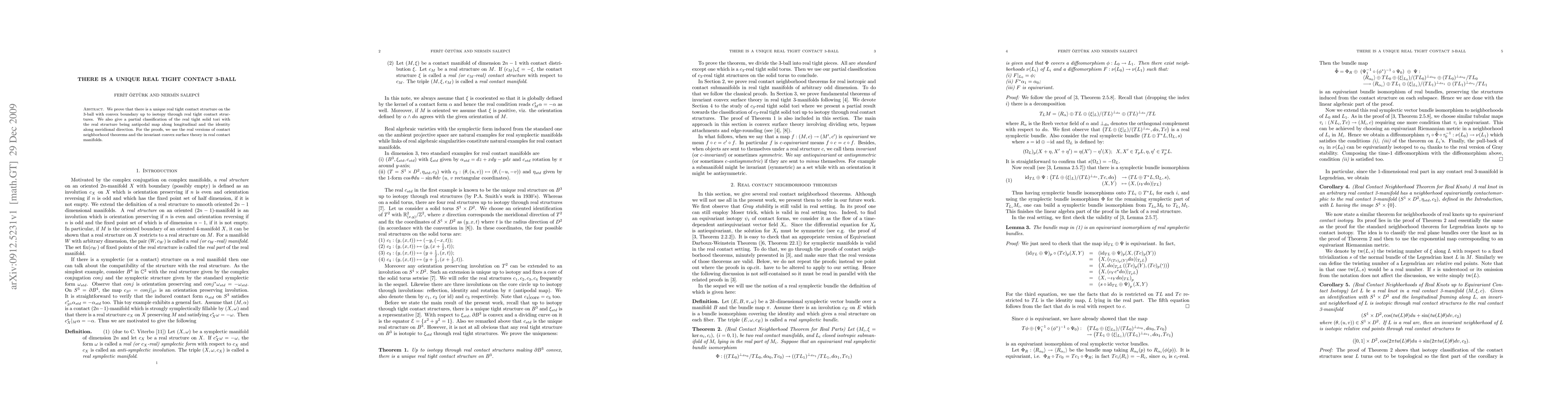 Researchers prove the existence of a unique real tight contact structure on the 3-ball with a convex boundary, using real versions of contact neighborhood theorems and invariant convex surface theory. This finding contributes to the classification of real tight solid tori in contact manifolds.