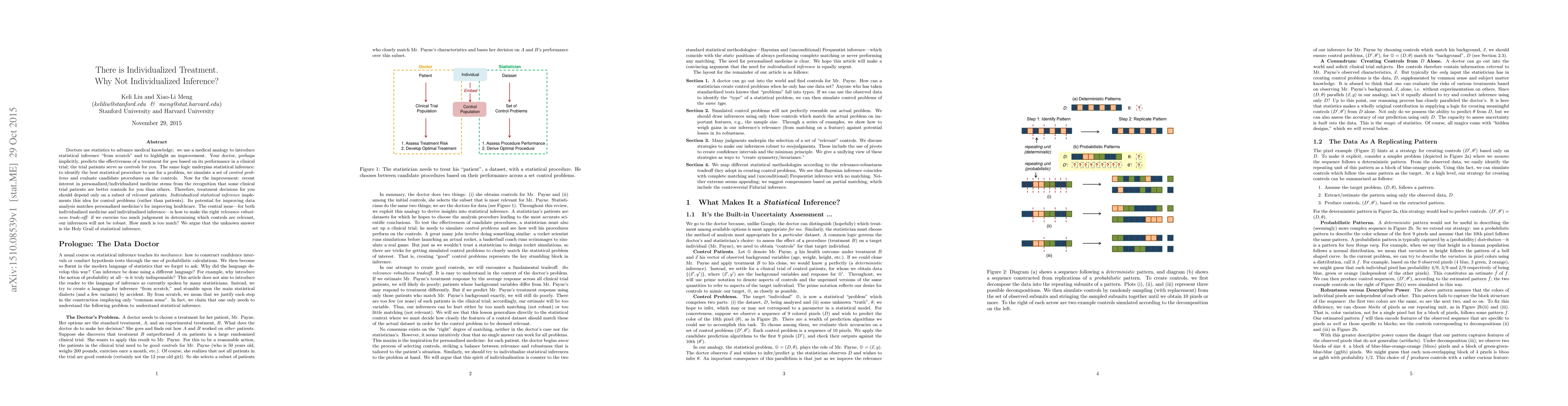 Doctors use statistics to advance medical knowledge; we use a medical analogy to introduce statistical inference "from scratch" and to highlight an improvement. Your doctor, perhaps implicitly, predicts the effectiveness of a treatment for you based on its performance in a clinical trial; the trial patients serve as controls for you. The same logic underpins statistical inference: to identify the best statistical procedure to use for a problem, we simulate a set of control problems and evaluate candidate procedures on the controls. Now for the improvement: recent interest in personalized/individualized medicine stems from the recognition that some clinical trial patients are better controls for you than others. Therefore, treatment decisions for you should depend only on a subset of relevant patients. Individualized statistical inference implements this idea for control problems (rather than patients). Its potential for improving data analysis matches personalized medicine's for improving healthcare. The central issue--for both individualized medicine and individualized inference--is how to make the right relevance robustness trade-off: if we exercise too much judgement in determining which controls are relevant, our inferences will not be robust. How much is too much? We argue that the unknown answer is the Holy Grail of statistical inference.