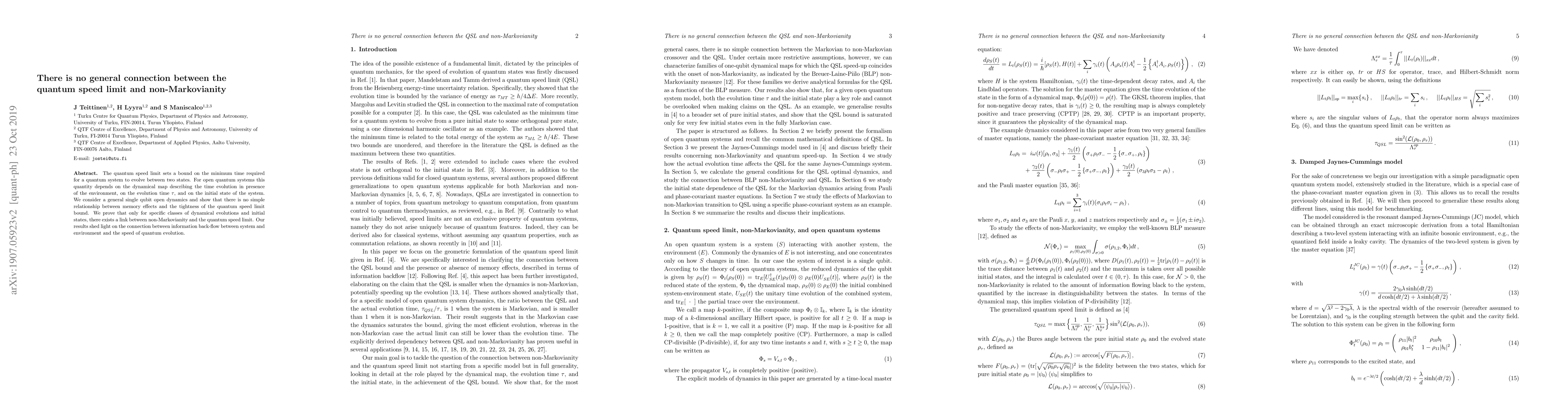 The quantum speed limit sets a minimum time for quantum system evolution, but no general link exists between this limit and non-Markovianity. Only specific dynamics and initial states reveal a connection between memory effects and the tightness of the quantum speed limit.