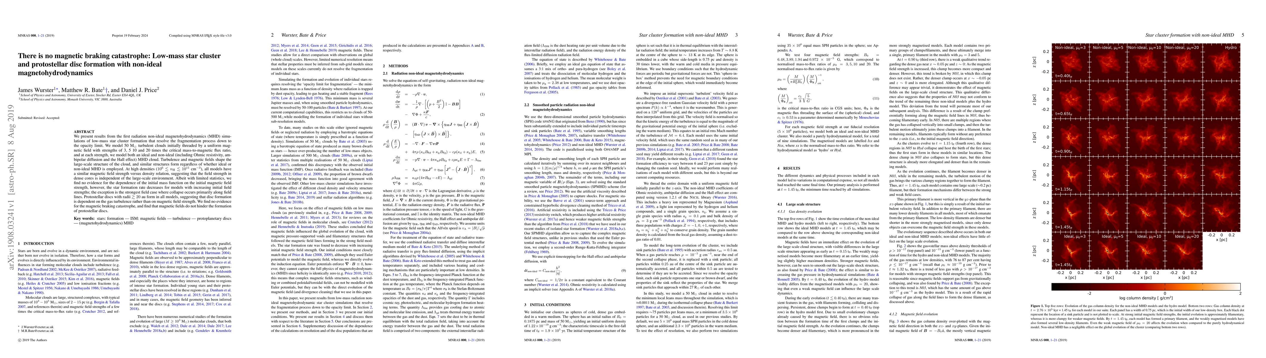 This paper presents the first radiation non-ideal magnetohydrodynamics (MHD) simulations of low-mass star cluster formation, finding that protostellar discs form regardless of magnetic field strength due to gas turbulence. The study concludes that magnetic fields do not hinder disc formation and there is no evidence for a magnetic braking catastrophe.